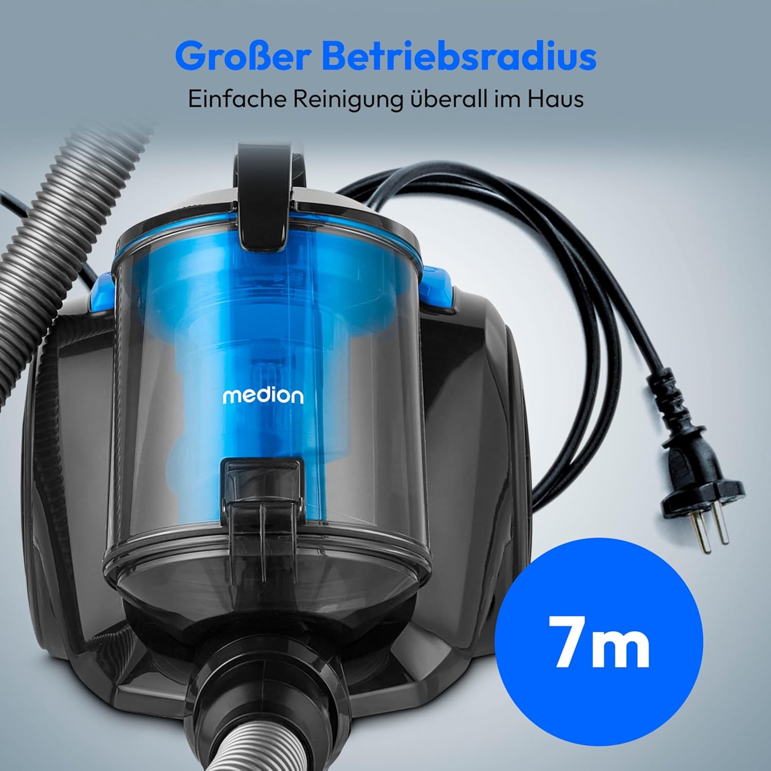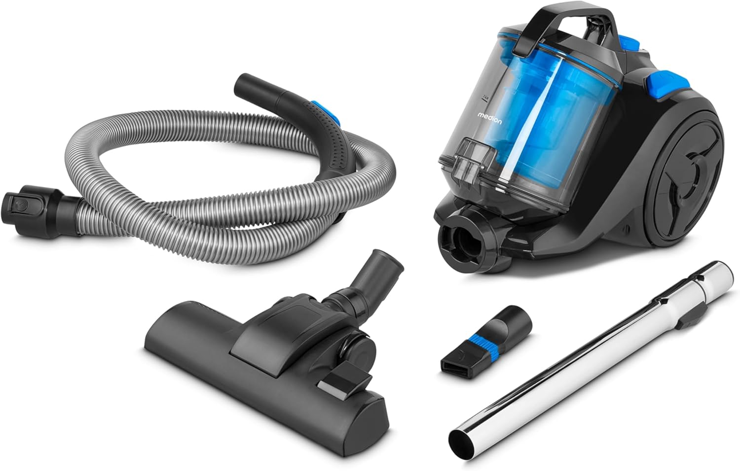 - Lieferumfang: Beutelloser Staubsauger MD12078, Universalbodendüse, 2in1 Fugen-/Bürstenaufsatz, Teleskopsaugrohr.