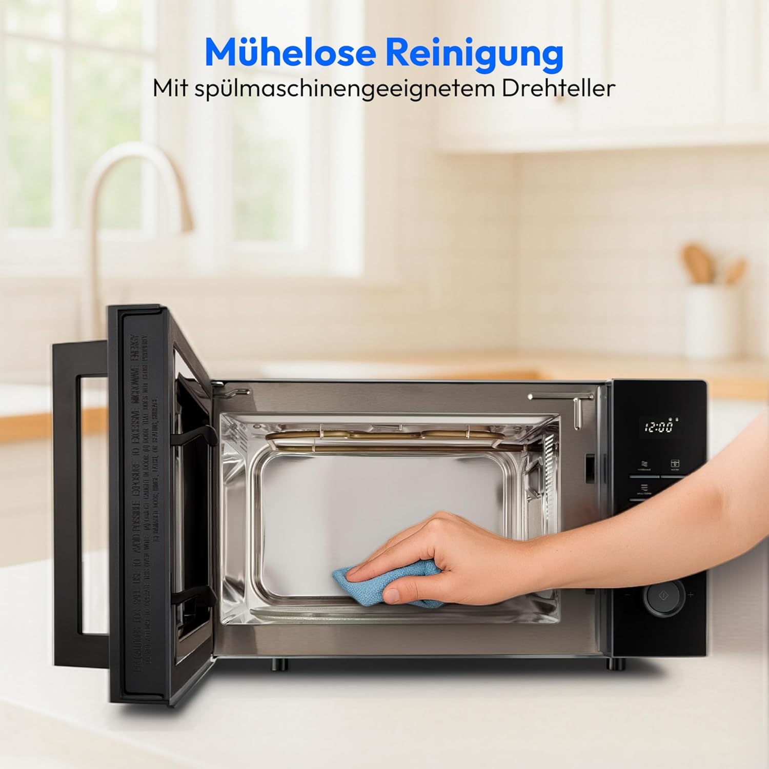 • AUFTAUFUNKTION & ALLTAGSHELFER: Fleisch, Fisch oder Brot schonend auftauen in wenigen Minuten. Praktisch, zeitsparend und immer einsatzbereit – Ihre Mikrowelle mit Grill und Heissluft für mehr Flexibilität im Alltag.
