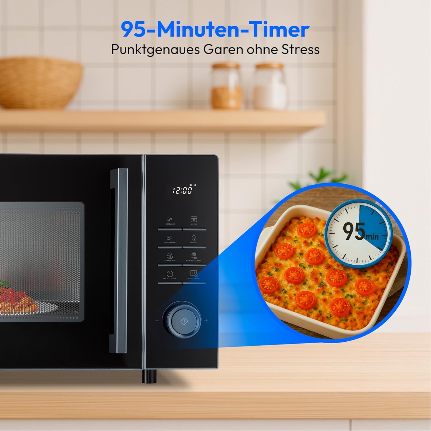 • EINFACHE BEDIENUNG & KOMFORTFUNKTIONEN: Mit 10 Leistungsstufen, 95-Minuten Timer, Kochendsignal und Innenbeleuchtung behalten Sie stets die Kontrolle. Stressfreies Kochen und Backen mit präzisen Ergebnissen.