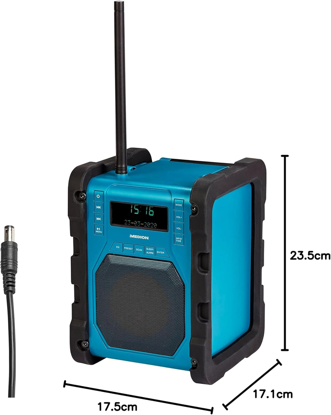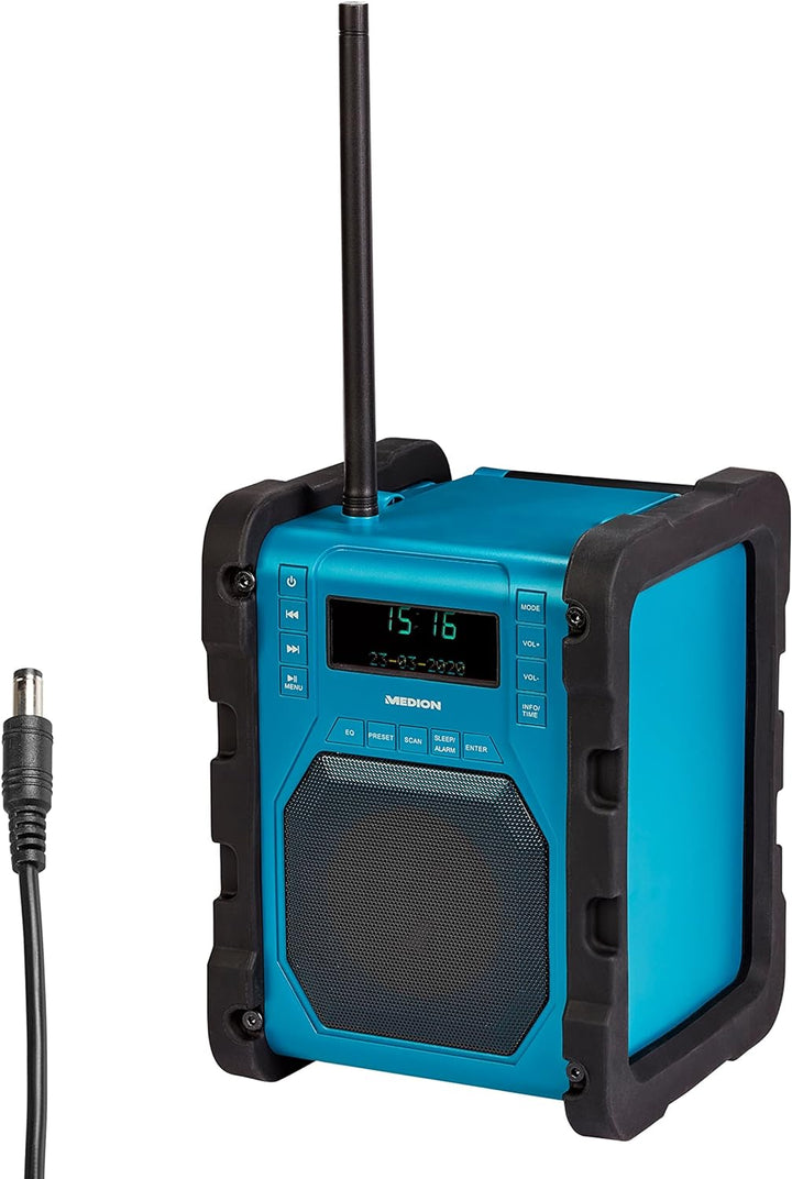 - Lieferumfang: MEDION LIFE P66098 MD43951 DAB+ Baustellenradio, Abnehmbare Stabantenne, Netzteil, Bedienungsanleitung, Garantiekarte