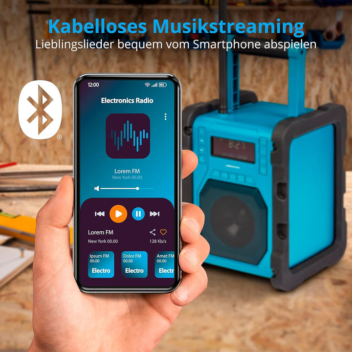 - Kabellose Musikübertragung vom Smartphone oder Tablet (Bluetooth v4.1, Reichweite ca. 10m, abhängig von den Umgebungsbedingungen)