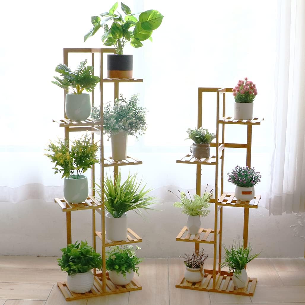 - Höhe Qualität : Das stehendes Blumensregal besteht aus natürlichem und umweltfreundlichem Bambus,wurde wetterfest imprägniert, schöne Texturen, moderate Festigkeit, resistent gegen Insekten und Fäule, stabil, langlebig und Pflegeleicht.