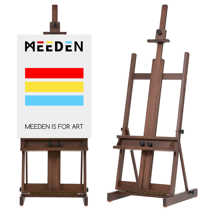 - QUALITÄTSHOLZ: Die MEEDEN H-Rahmen-Staffelei ist aus massivem deutschem Buchenholz gefertigt und mit einem walnussfarbenen Finish versehen, das robust und stilvoll zugleich ist. Wie immer unterstützen wir die Karriere aller Künstler mit ausgesuchten