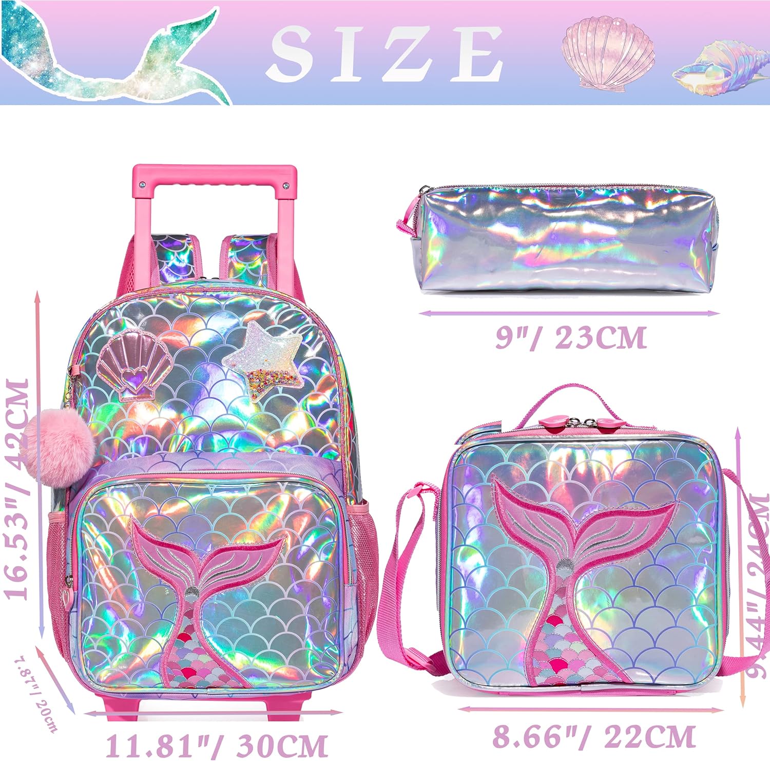 - Schulranzen Mit Rollen Set: Schulranzen Trolley Mädchen: 42 x 30 x 20CM, Lunchtasche: 22 x 24CM, Federmäppchen: 23CM. schulranzen trolley mädchen kann Ihre Kinder zufrieden stellen, ihre täglichen Schulsachen zu laden.