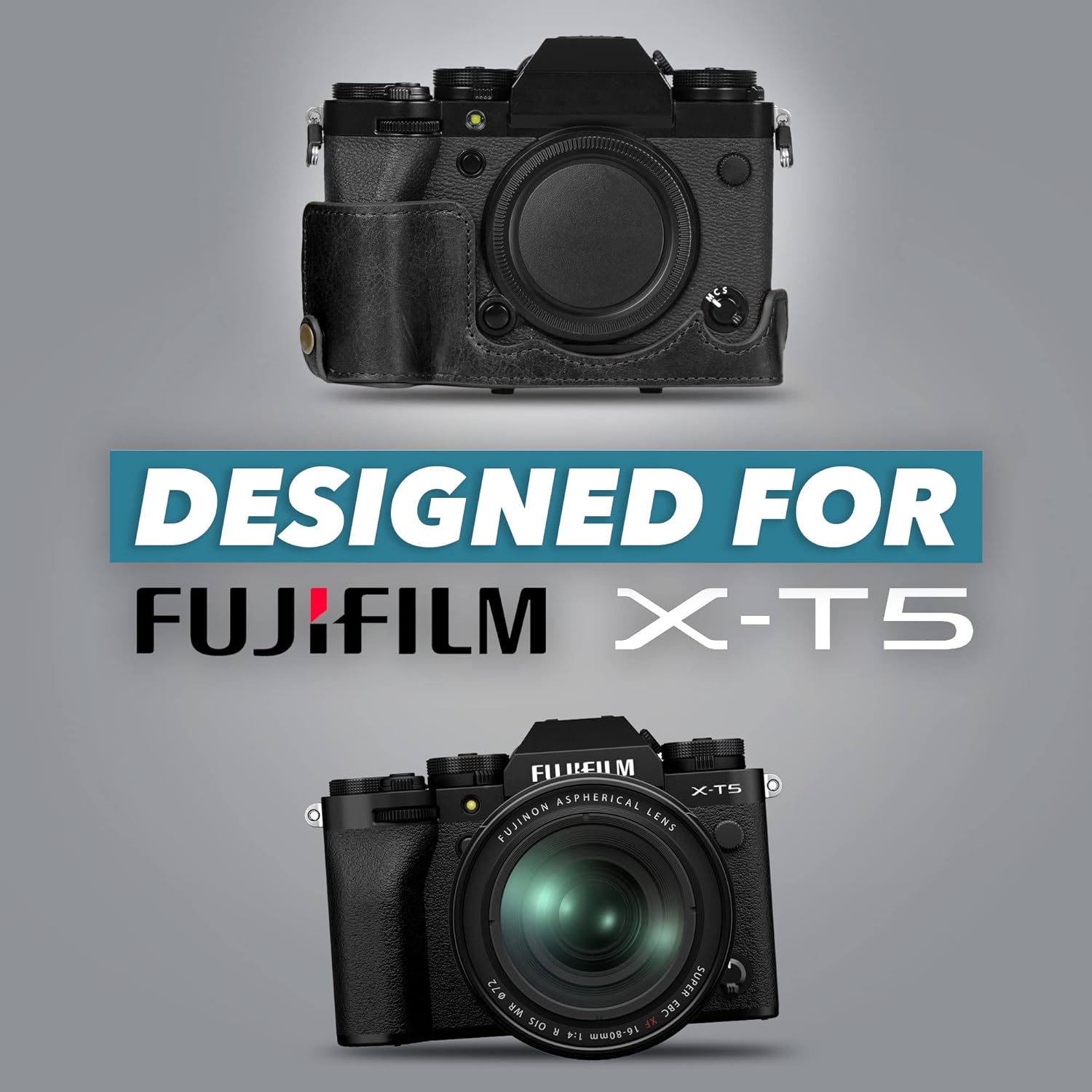 - MASSGESCHNEIDERTE PASSFORM – Die MegaGear Premium-Echtleder-Kameratasche mit Batteriefach wurde speziell aus hochwertigem Echtleder für die Fujifilm X-T5-Modelle für präzise Passform und Abdeckung zugeschnitten.