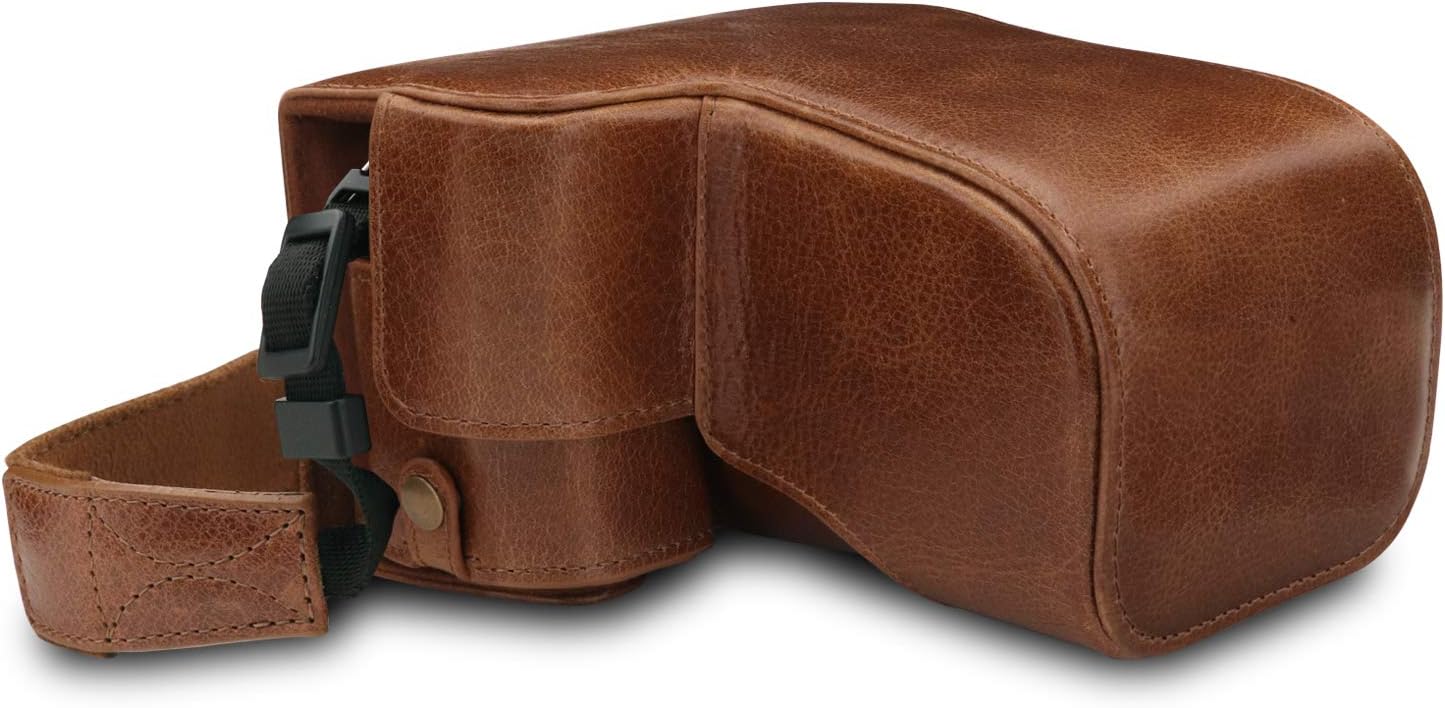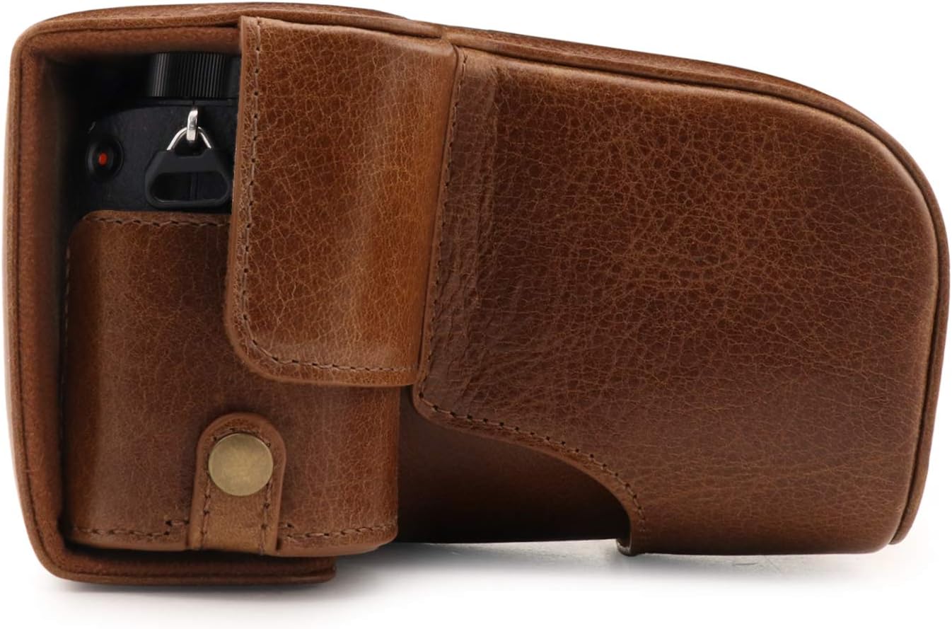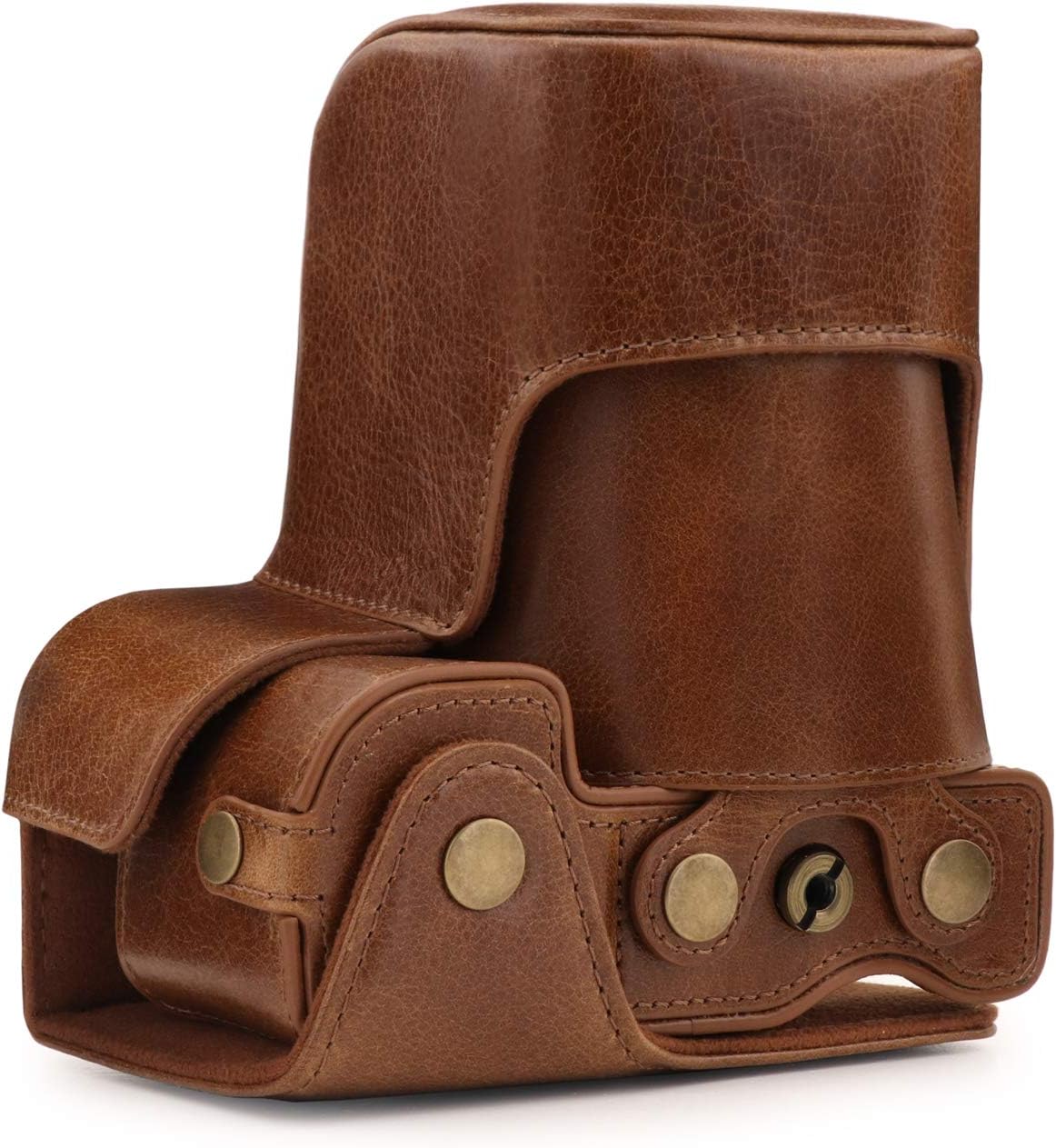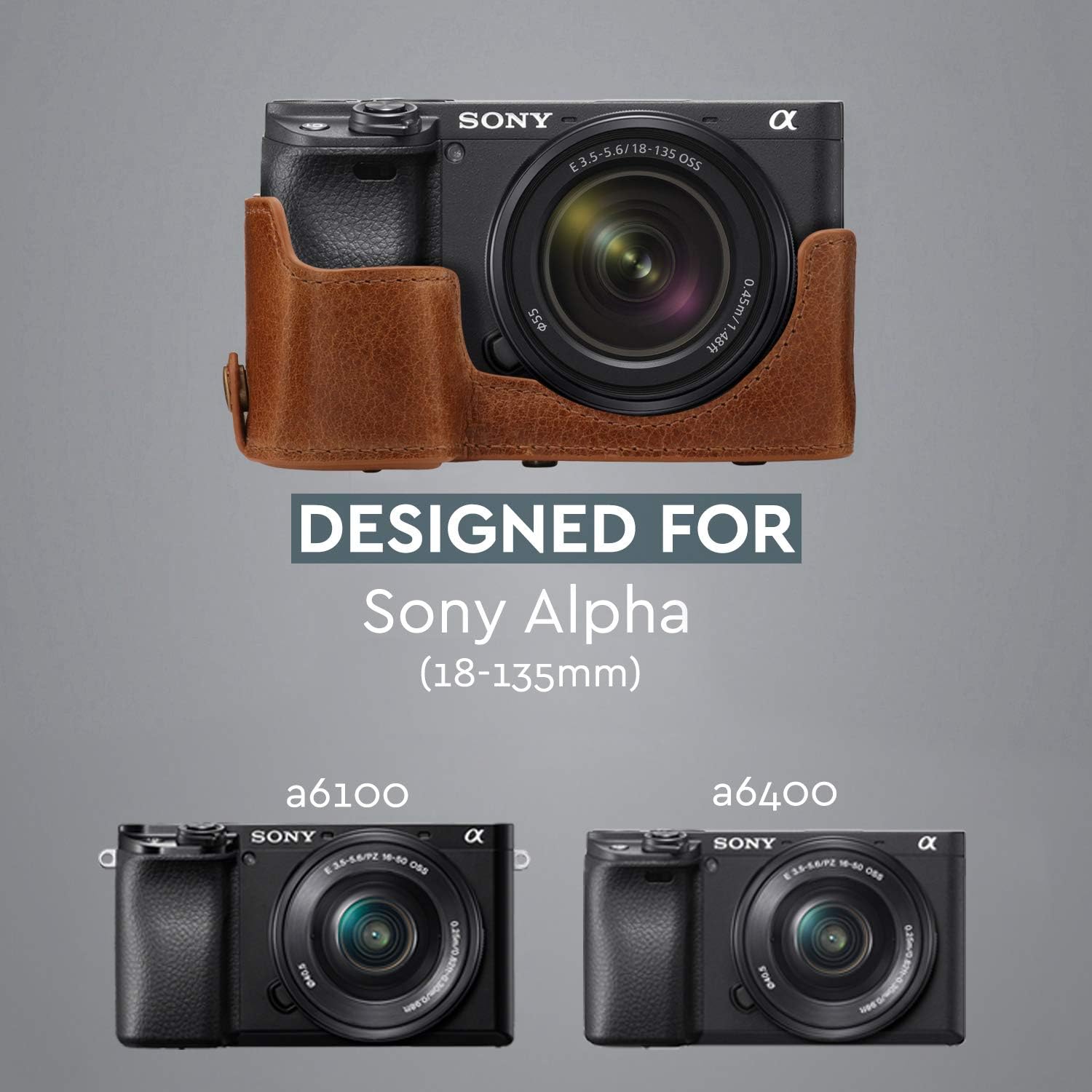 MegaGear Ever Ready Echtleder Kameratasche mit Trageriemen kompatibel mit Sony Alpha A6100, A6400 (1