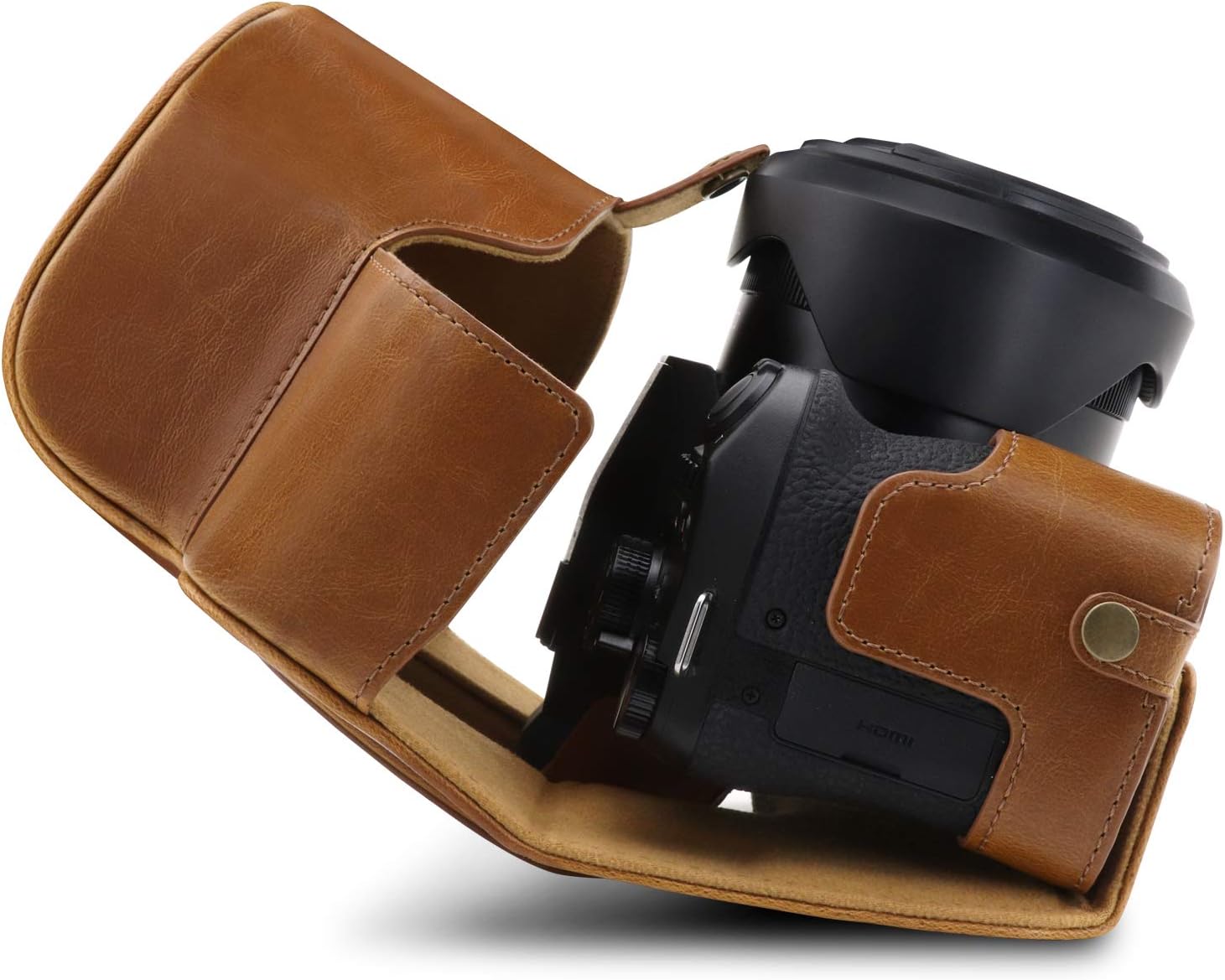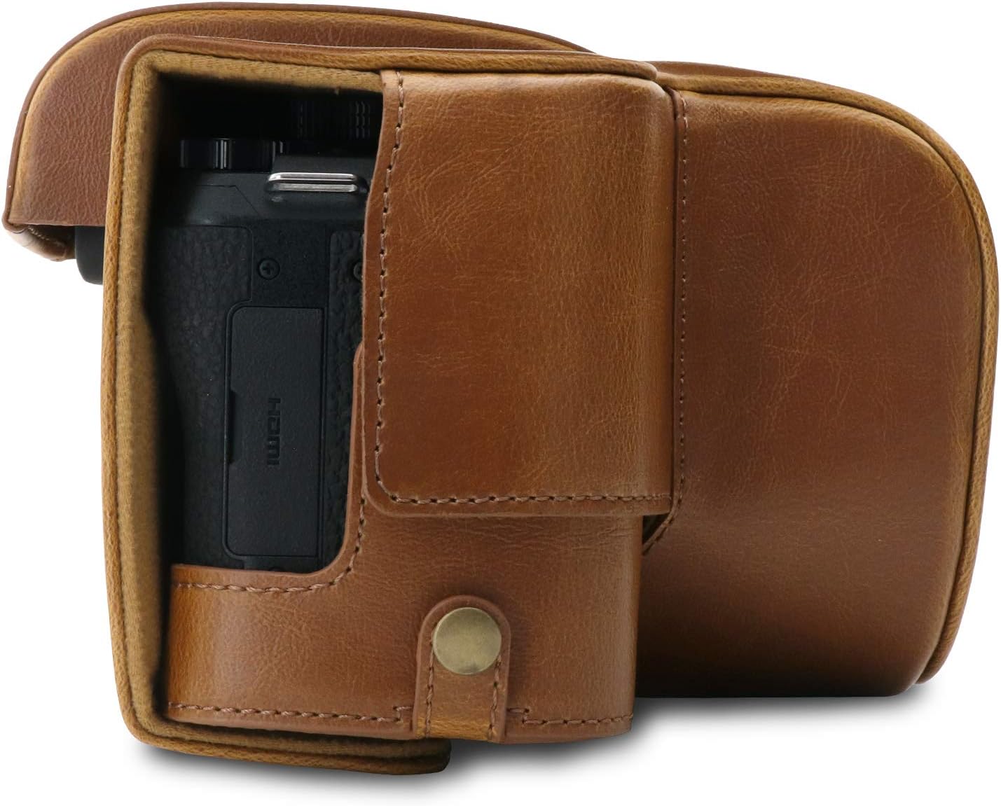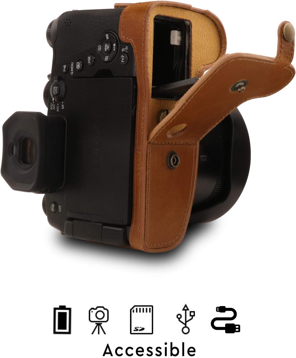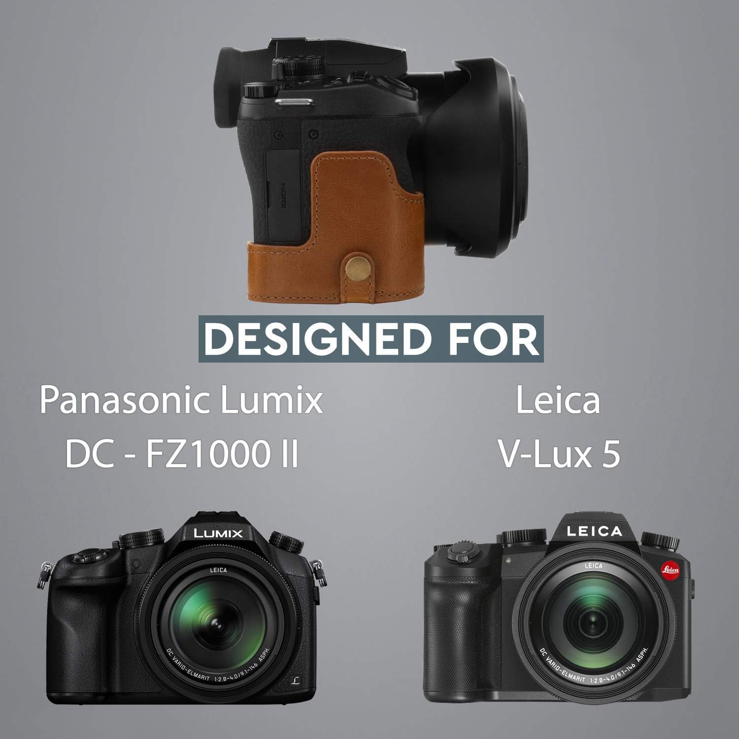 MegaGear MG1680 Ever Ready Leder Kameratasche mit Trageriemen kompatibel mit Leica V-Lux 5, Panasoni
