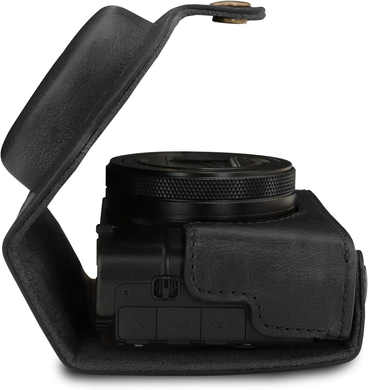 - ERHÖHTER SCHUTZ – Durch die robuste Bauweise und die passgenaue Form schützt dieses Ledercase Ihre Kamera effektiv vor Stössen, Staub, Beschädigungen und Erschütterungen. Das weiche, gepolsterte Innenfutter schützt Ihren LCD-Bildschirm und das