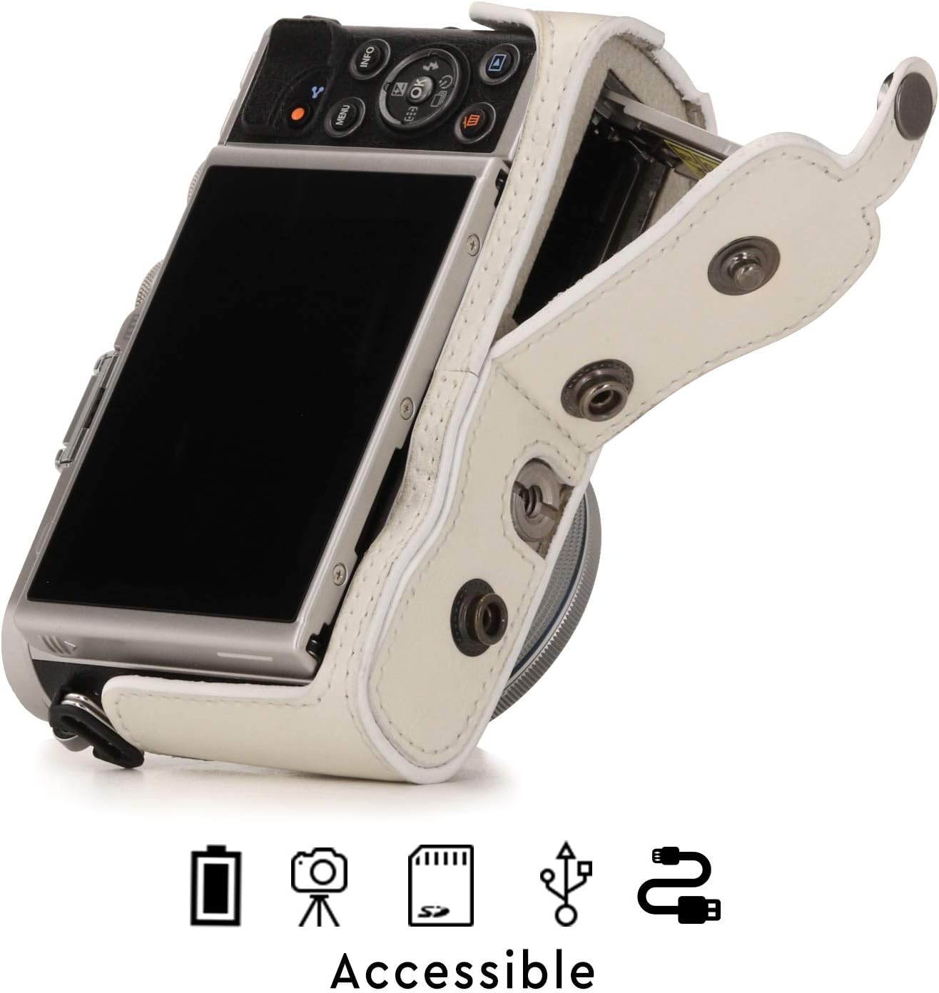 MegaGear MG1455 Olympus PEN E-PL9 (14-42mm) Ever Ready Leder Kamera-Case mit Trageriemen - Weiss, We