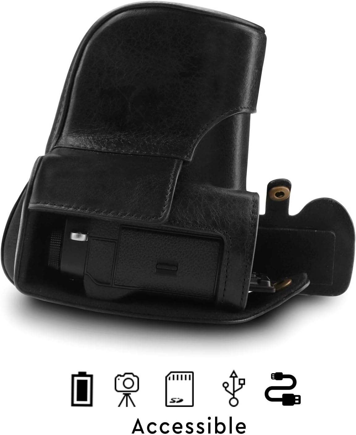 • ERHÖHTER SCHUTZ – Durch die robuste Bauweise und die passgenaue Form schützt dieses Ledercase Ihre Kamera effektiv vor Stössen, Staub, Beschädigungen und Erschütterungen. Das weiche, gepolsterte Innenfutter schützt Ihren LCD-Bildschirm und das
