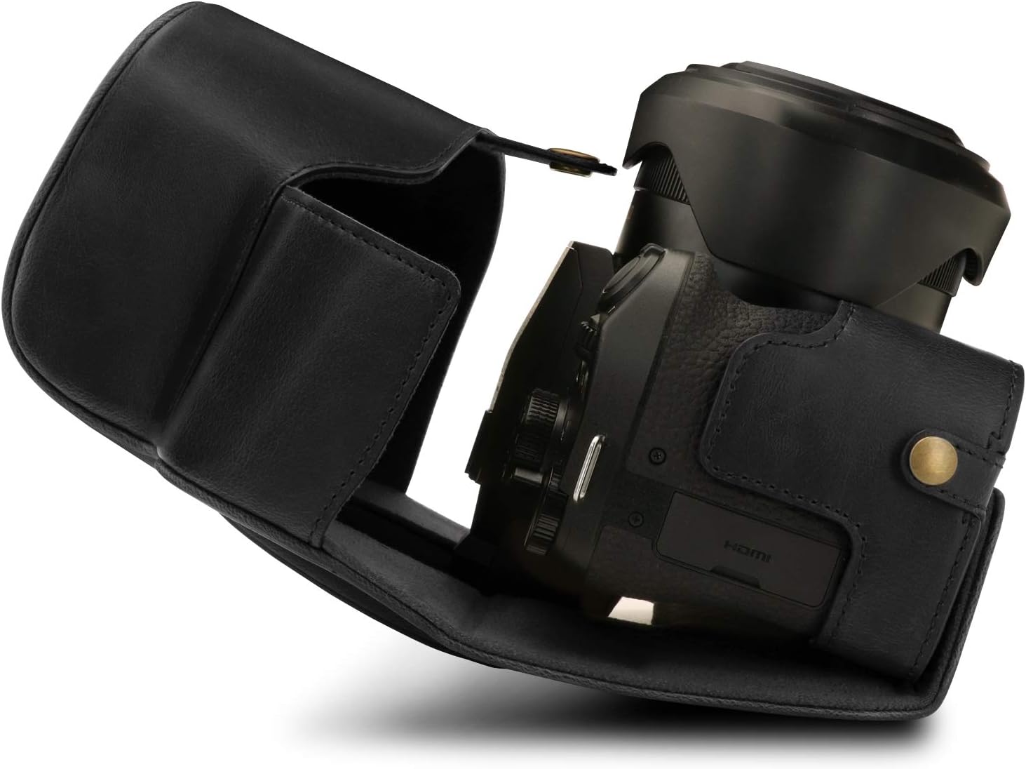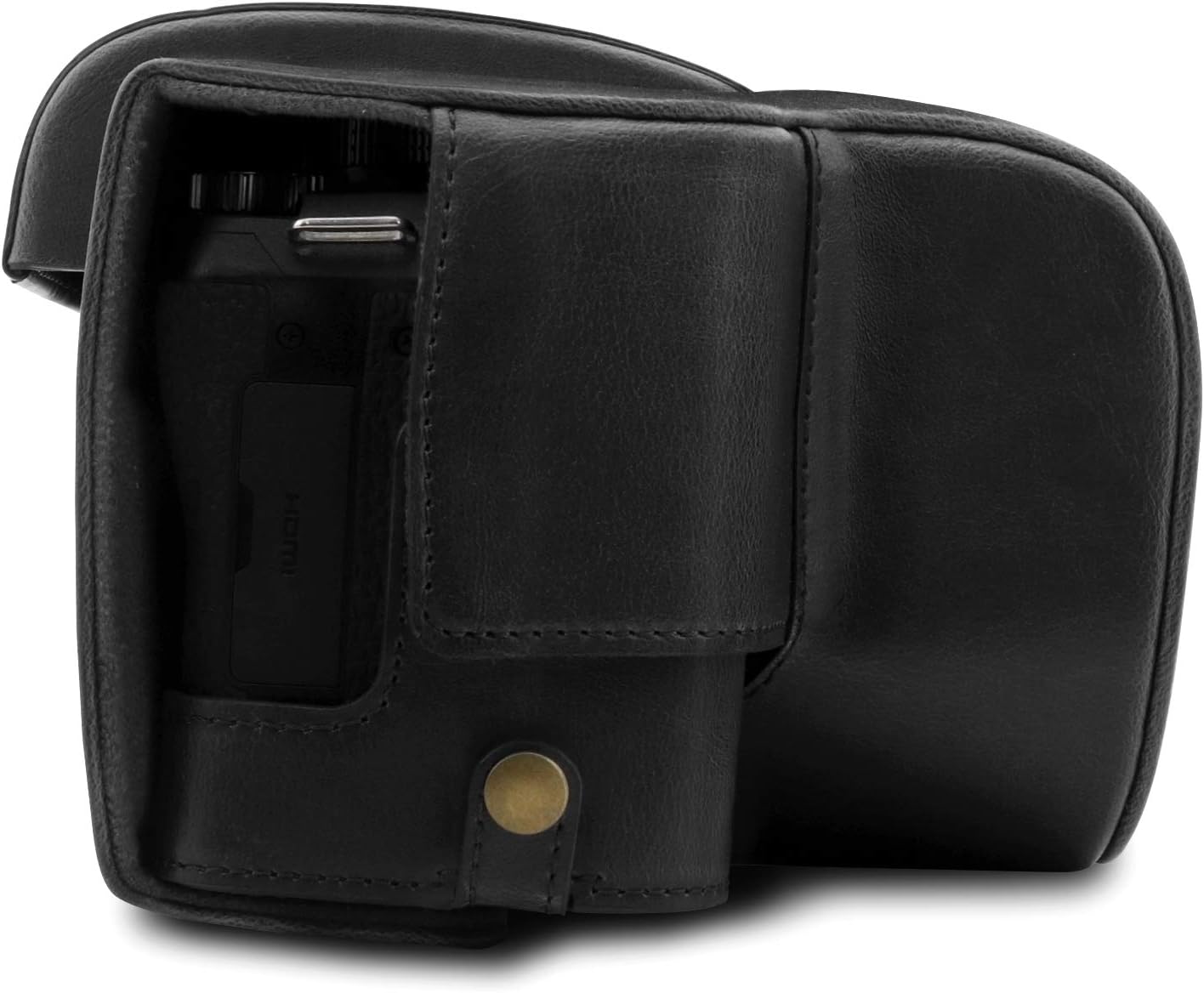 MegaGear MG1678 Ever Ready Leder Kameratasche mit Trageriemen kompatibel mit Leica V-Lux 5, Panasoni