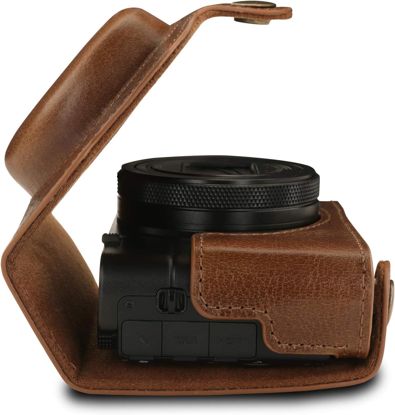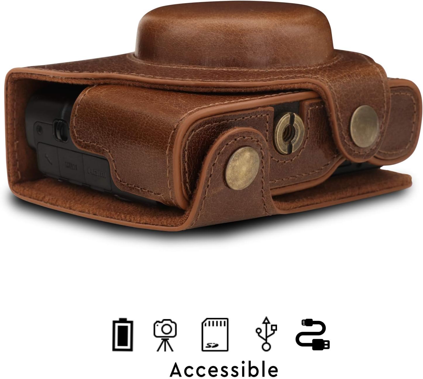 - ERHÖHTER SCHUTZ – Durch die robuste Bauweise und die passgenaue Form schützt dieses Ledercase Ihre Kamera effektiv vor Stössen, Staub, Beschädigungen und Erschütterungen. Das weiche, gepolsterte Innenfutter schützt Ihren LCD-Bildschirm und das