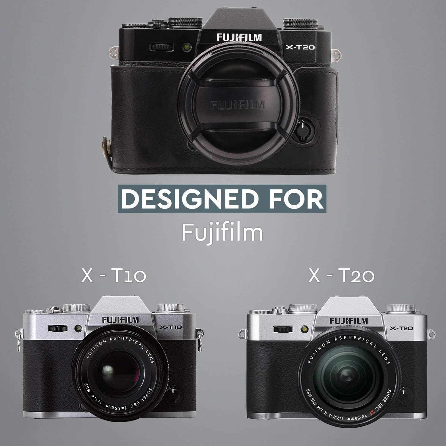MegaGear MG576 Ever Ready Leder Kameratasche mit Trageriemen kompatibel mit Fujifilm X-T30, X-T20 (1