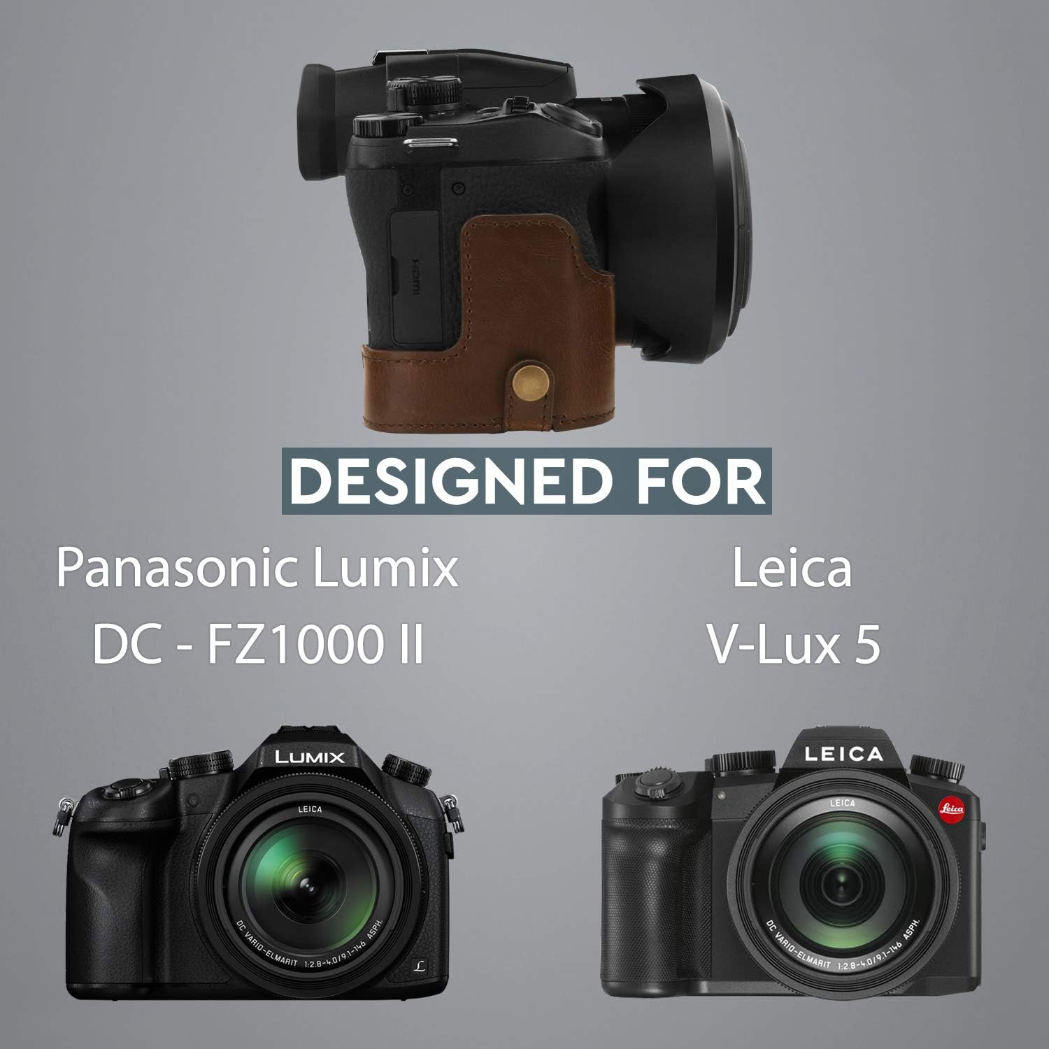 - PASSGENAU – Die MegaGear Premium Kameratasche aus Leder mit Batterie Zugang wurde speziell für die Leica V-Lux 5, Panasonic Lumix DC-FZ1000 II aus hochwertigem Kunstleder gefertigt. Absolut passgenau für den besten Sitz.
