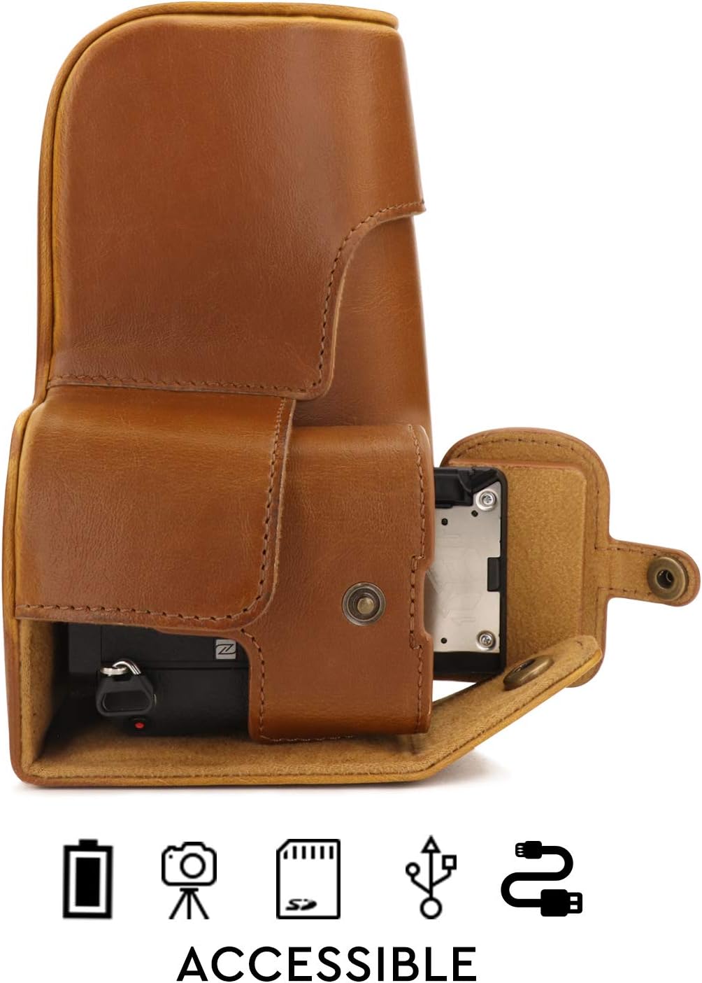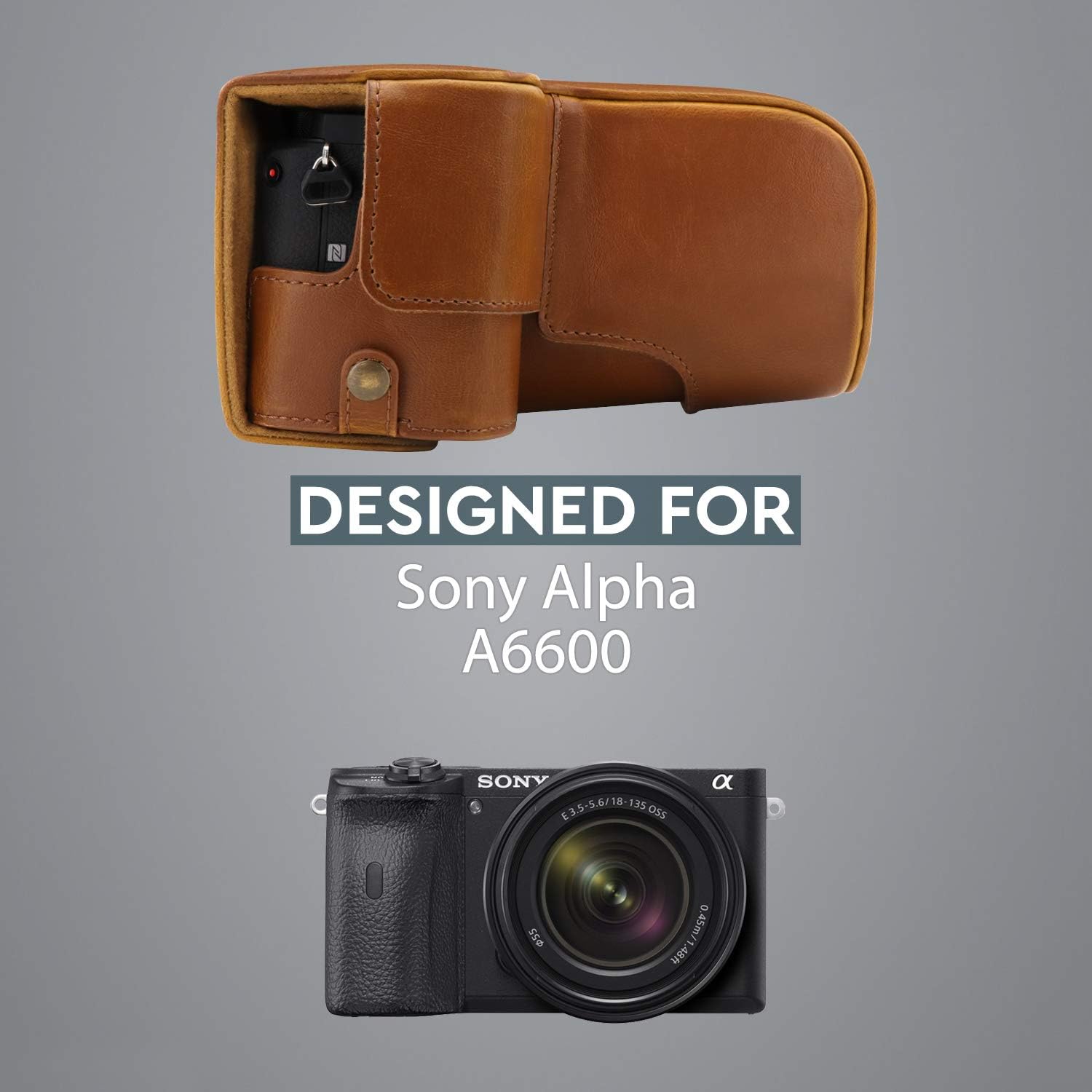 - Massgeschneiderte Passform – Die MegaGear Leder-Kameratasche mit Akkuzugriff ist speziell aus hochwertigem Leder für die Sony Alpha A6600 (18–135 mm) Modelle für präzise Passform und Abdeckung.