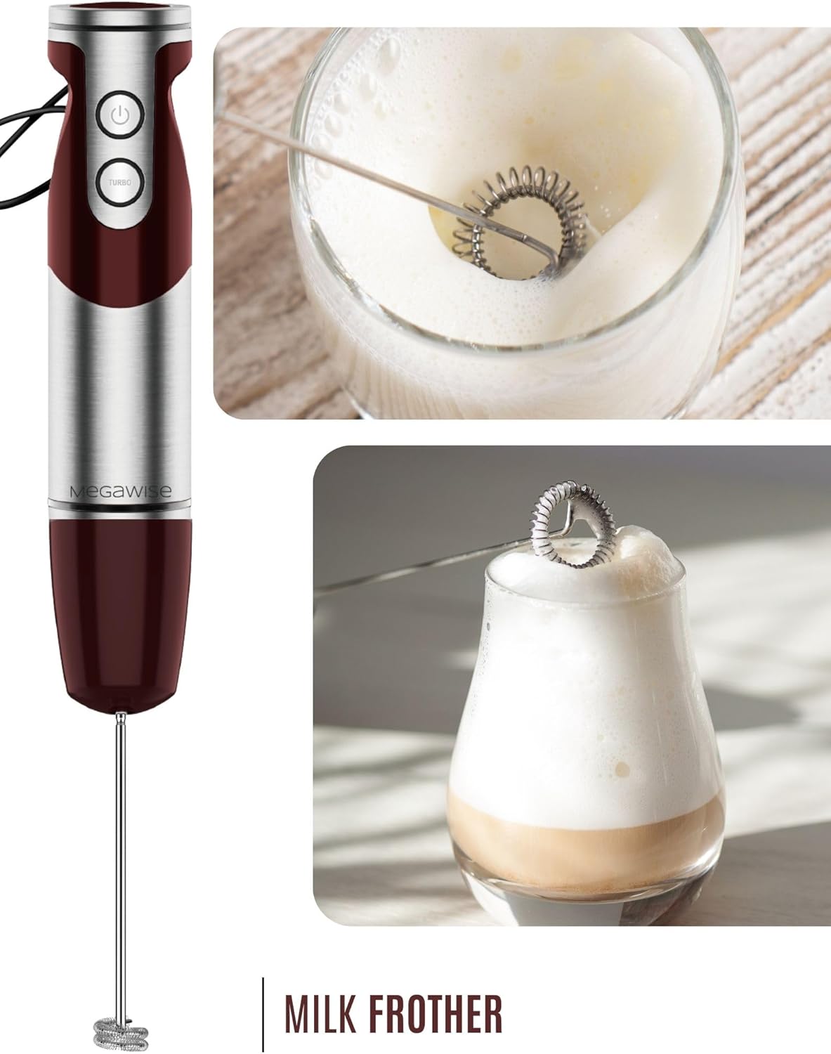 - Ergonomisches Design und leicht zu reinigen: Der ergonomische Griff bietet einen rutschfesten, bequemen Griff für müheloses Mixen. Alle Aufsätze (ausser dem Motor) sind abnehmbar und spülmaschinenfest für eine einfache Reinigung und bestehen aus