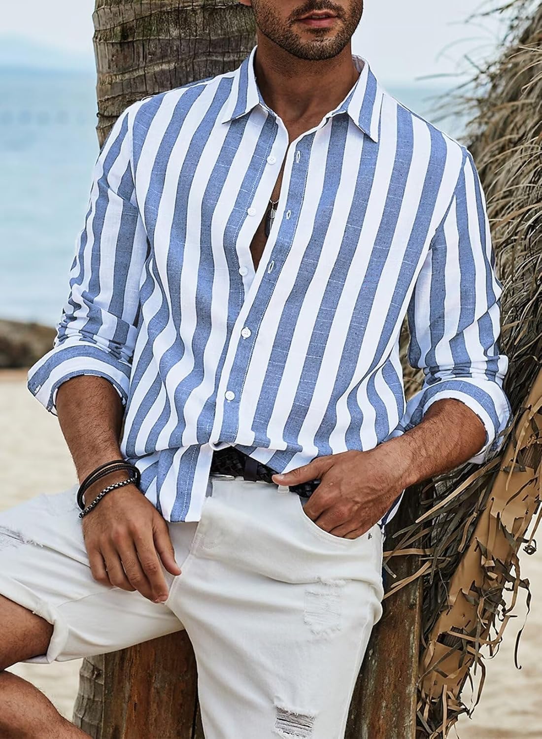 Meilicloth Herren Hemd Langarm Sommer Gestreifte Freizeithemden Casual mit Knöpfen Regular Fit A Him