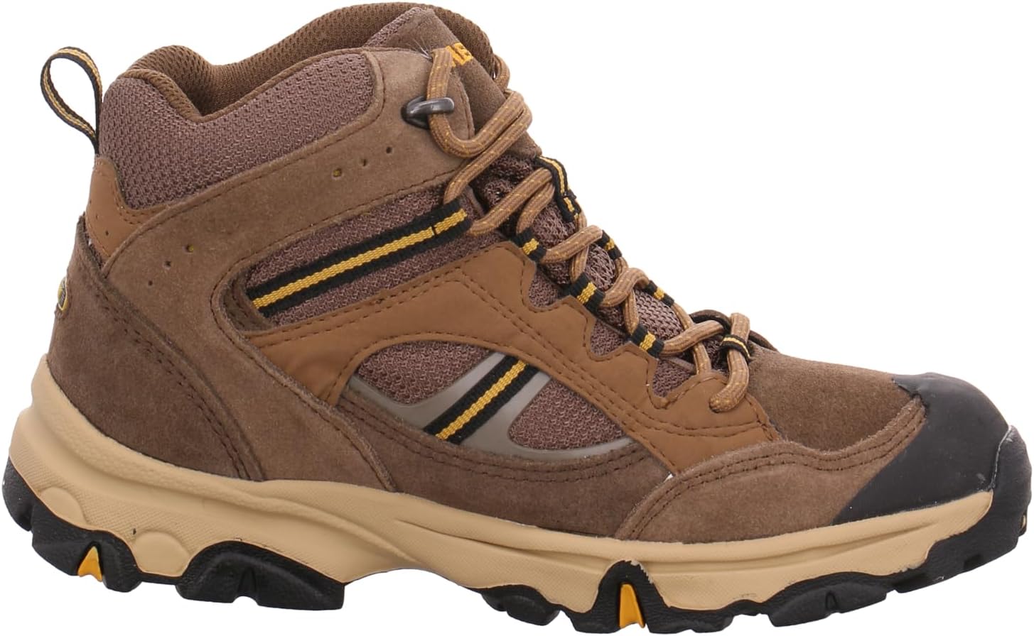 • Material: braunes Velourleder und Mesh 100% Polyamid, orange abgesetzt