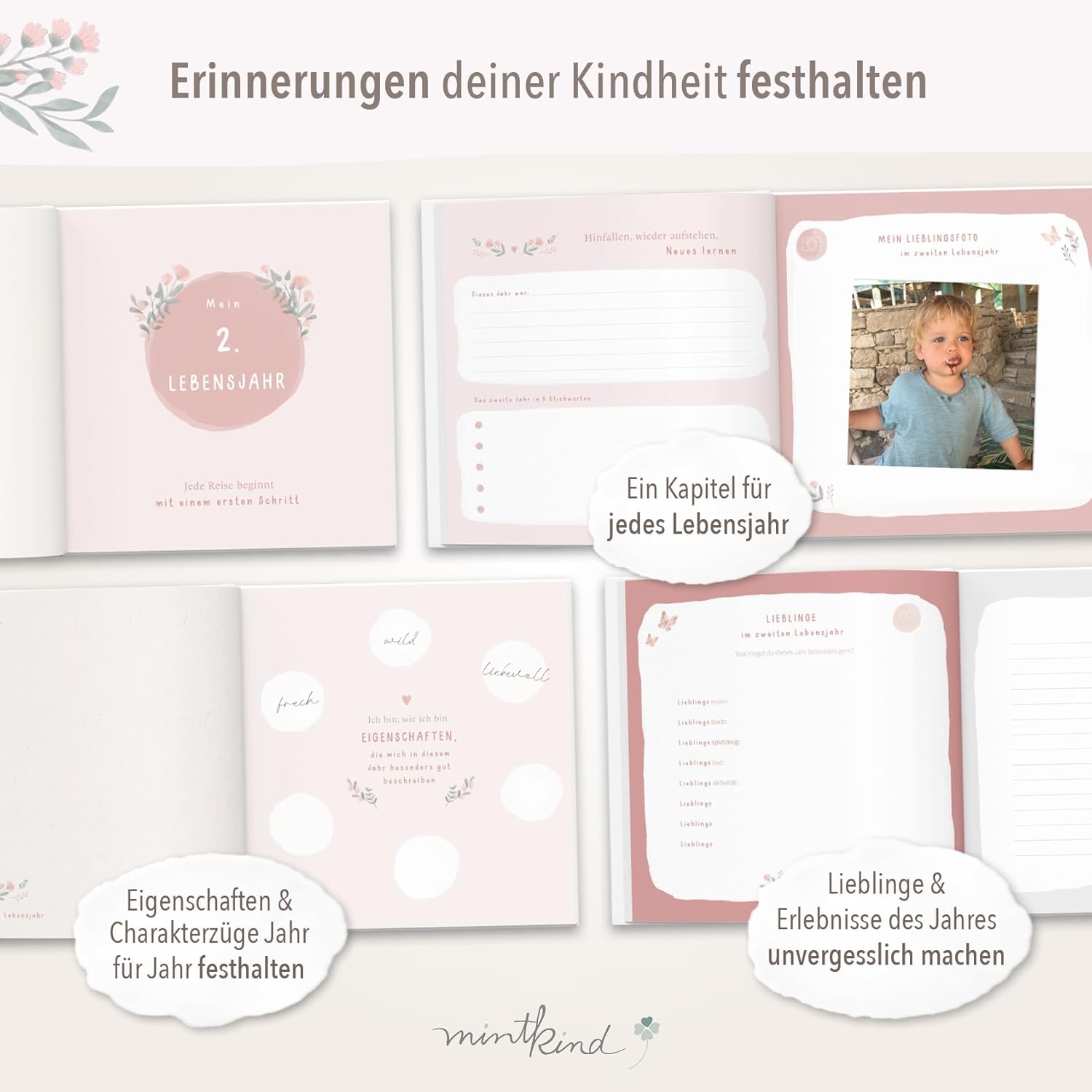 - 💕DIE KINDHEIT FESTHALTEN: In unserem Tagebuch zum Eintragen werden alle Erlebnisse und Glücksmomente der ersten 10 Lebensjahre festgehalten. Charaktereigenschaften, besondere Freundschaften uvm.
