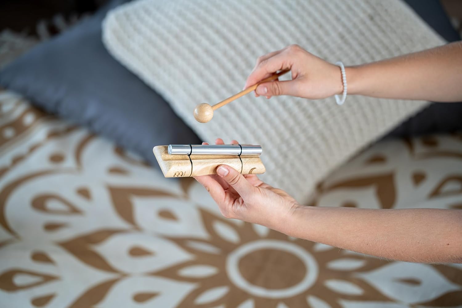 - Inklusive Holzschlägel – Um das Energy Chime zu aktivieren, halten sie es am Holzsockel und schlagen Sie es mit dem beiliegenden Schlägel an – zur Aufbewahrung kann dieser bequem unter den Klangstab gesteckt werden