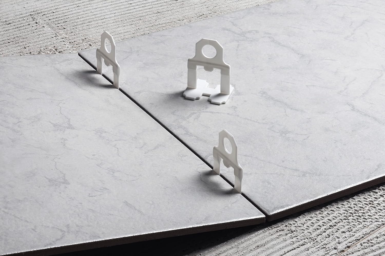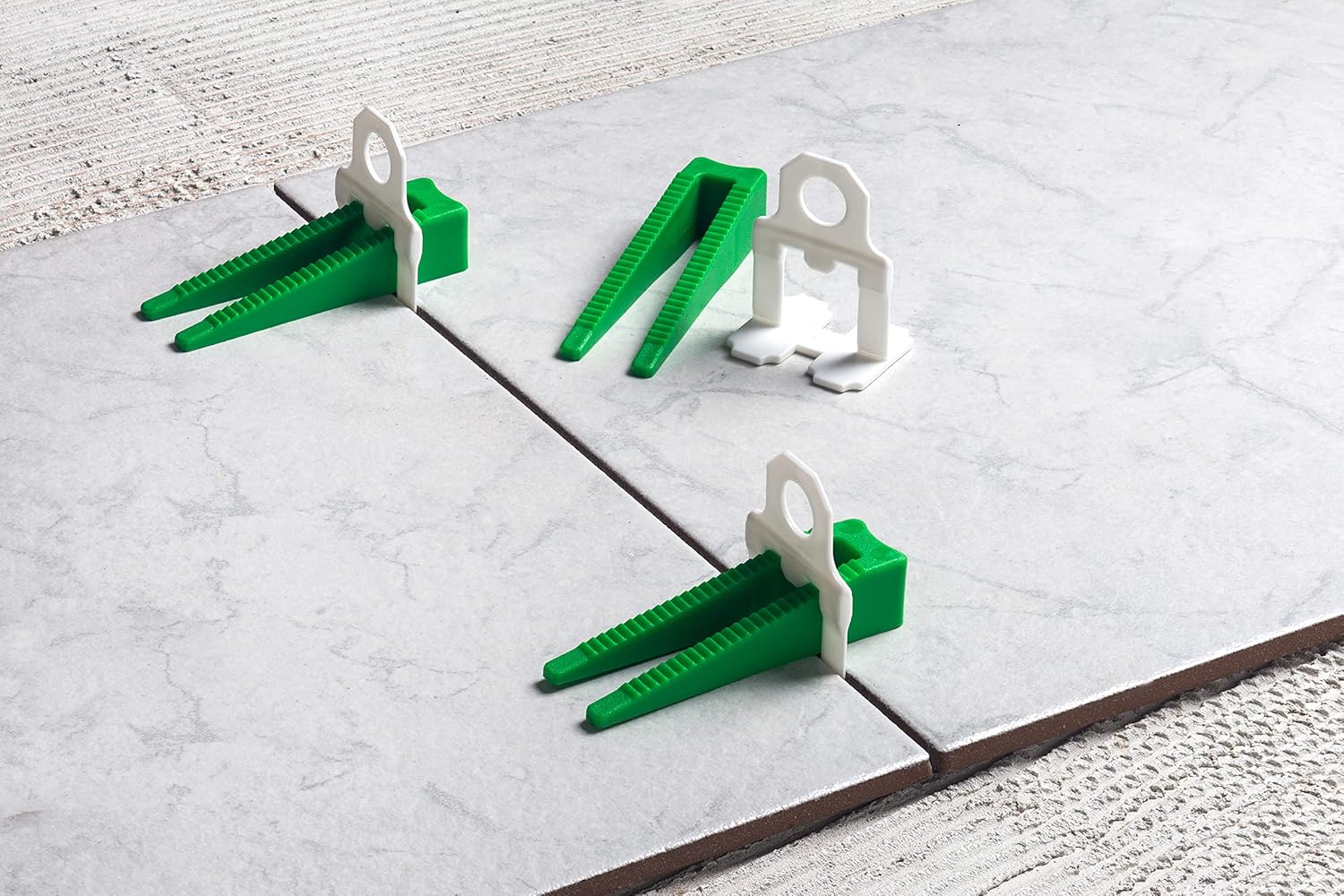 - EINFACHE ANWENDUNG: In wenigen Schritten zu plan verlegten Fliesen | Clips einfach unter austarierter Fliese installieren und Abstandskeile mit hohem Anpressdruck zwischen Clip und Fliese schieben | Die Abstandhalter garantieren so eine gleichmässige