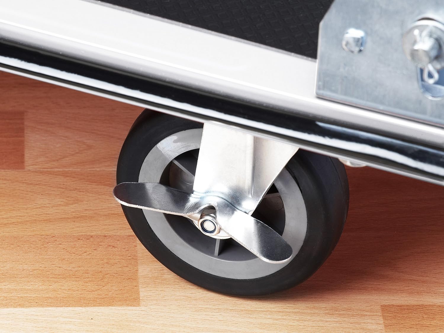 - SICHERER TRANSPORT: Ladefläche mit Antirutsch-Beschichtung | 6 Ösen zur Befestigung von Spanngurten zur Sicherung der Ladung | 2 Rollen mit Feststellbremse gegen unabsichtliches Wegrollen