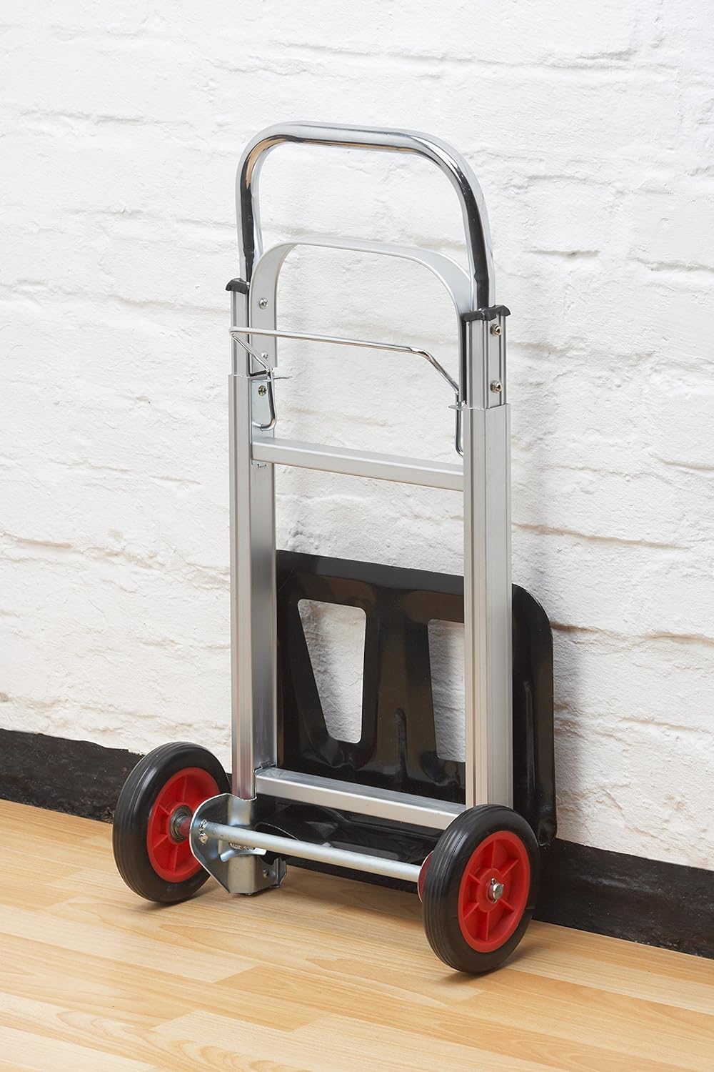 - PRODUKT-DETAILS: Abmessung (eingeklappt / ausgeklappt): 710 x 395 x 185 mm / 1080 x 410 x 395 mm | Abmessung Ladefläche: 385 x 245 mm | Griffhöhe: 710 – 1080 mm | Rad-Ø: 170 mm (6,7 Zoll) | Material Rad: PP / EVA | Material Gestell: Aluminium / Stahl