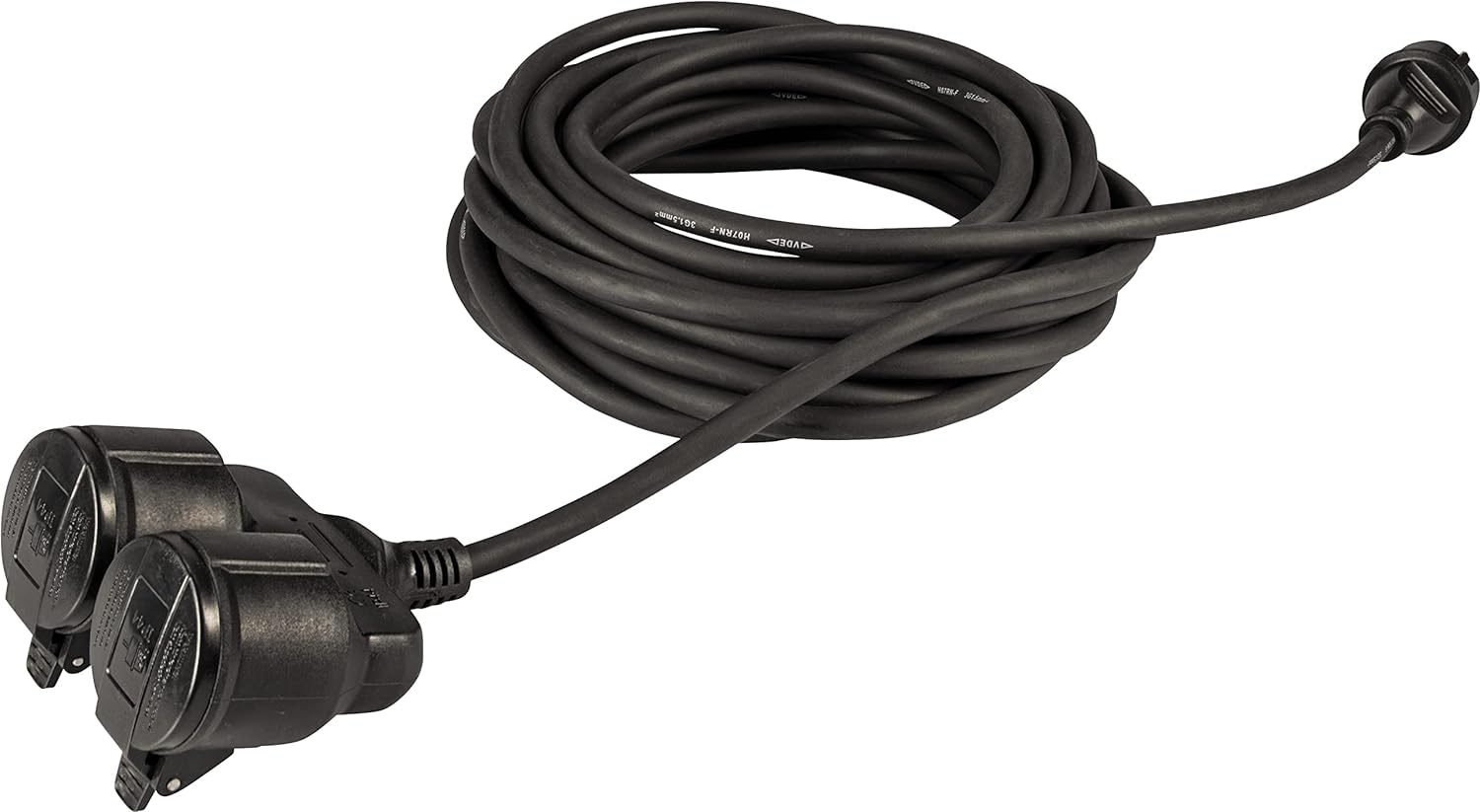 Meister Schutzkontakt-Verlängerung - mit Doppelkupplung - 10 m Kabel - Gummischlauchleitung - IP44 A