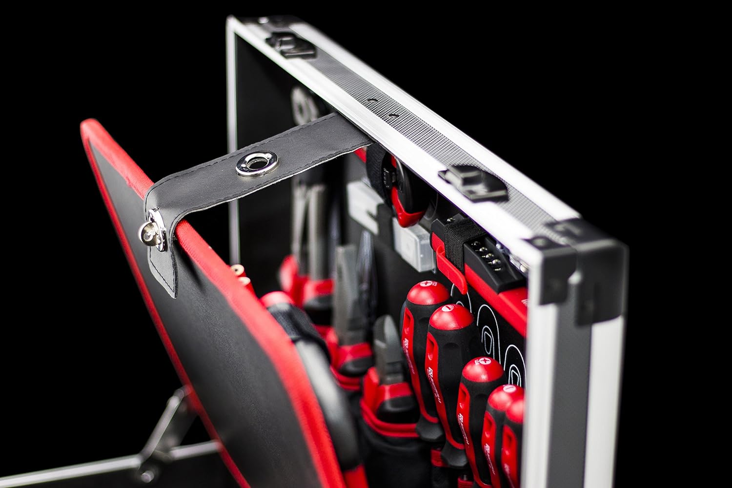 - PRAKTISCHER KOFFER: Koffer aus Aluminium mit abgerundeten Stosskanten & Eckenschutz | Komfort-Tragegriff für einen einfachen Transport | Integrierte Zwischeneinlage für das kompakte Verstauen des Werkzeugs