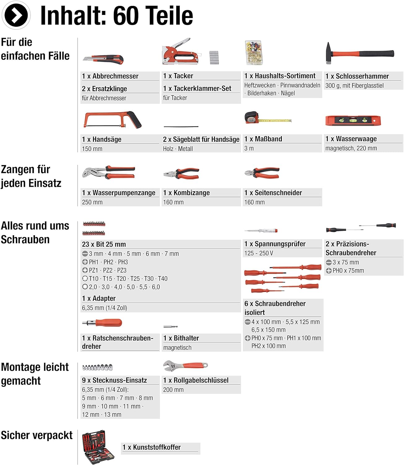 Meister Haushaltskoffer 60-teilig - Werkzeug-Set - Werkzeug für den täglichen Gebrauch / Werkzeugkof