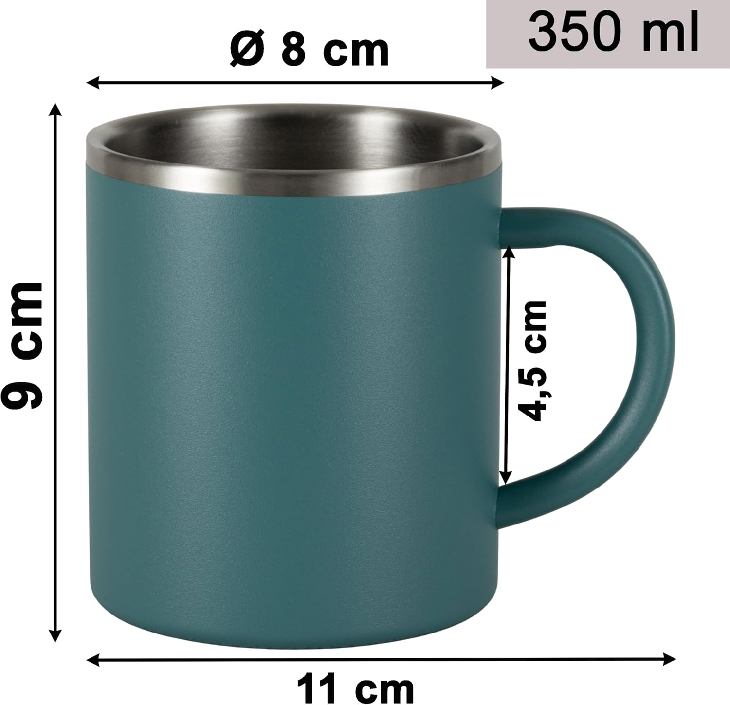 - ✅ 6 EDELSTAHLBECHER THERMOTASSE 350ML: Doppelwandig - mit Henkel - ohne Deckel -MATERIAL: rostfreier Edelstahl- hygienisch - MAssE: 350 ml - 9 cm hoch - Ø8 cm - mit Henkel 11 cm breit - Gewicht je Tasse: 140g
