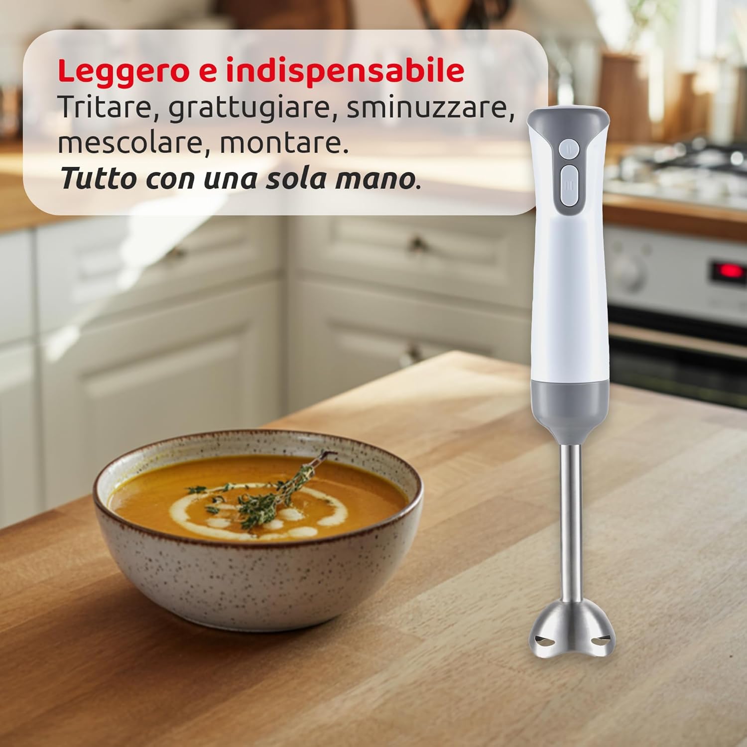 - Stabmixer mit essentiellem Design, praktisch und einfach zu handhaben dank des ergonomischen Griffs, der einen rutschfesten und bequemen Griff für eine einfache Kontrolle während des Gebrauchs bietet