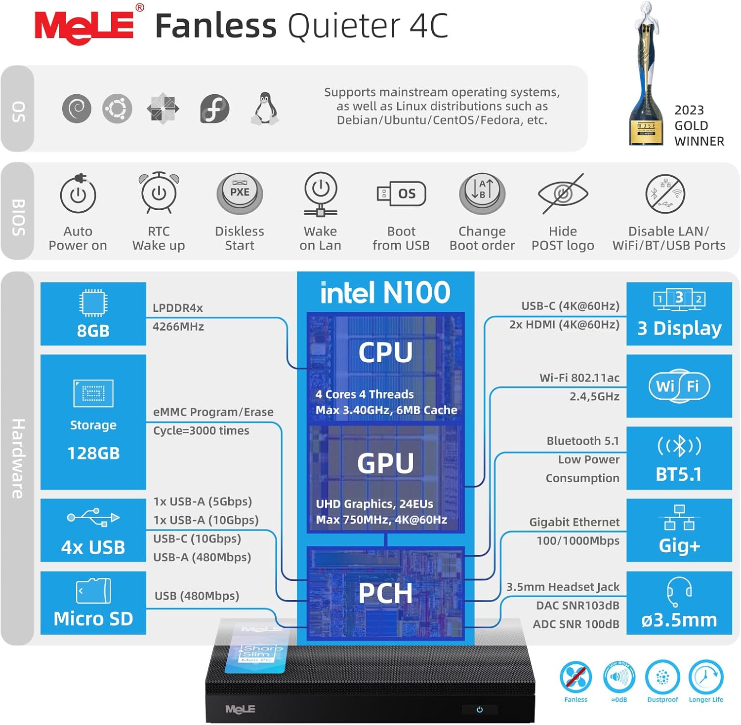 - 【Hochleistungsprozessor und ultraschneller Speicher】 Dieser Mikro-PC mit N100 Prozessor der 12. Generation mit 4 Kernen und 4 Threads bietet dieser kleine PC robuste Leistung und arbeitet gleichzeitig mit einem unglaublich niedrigen TDP von nur 8 W.