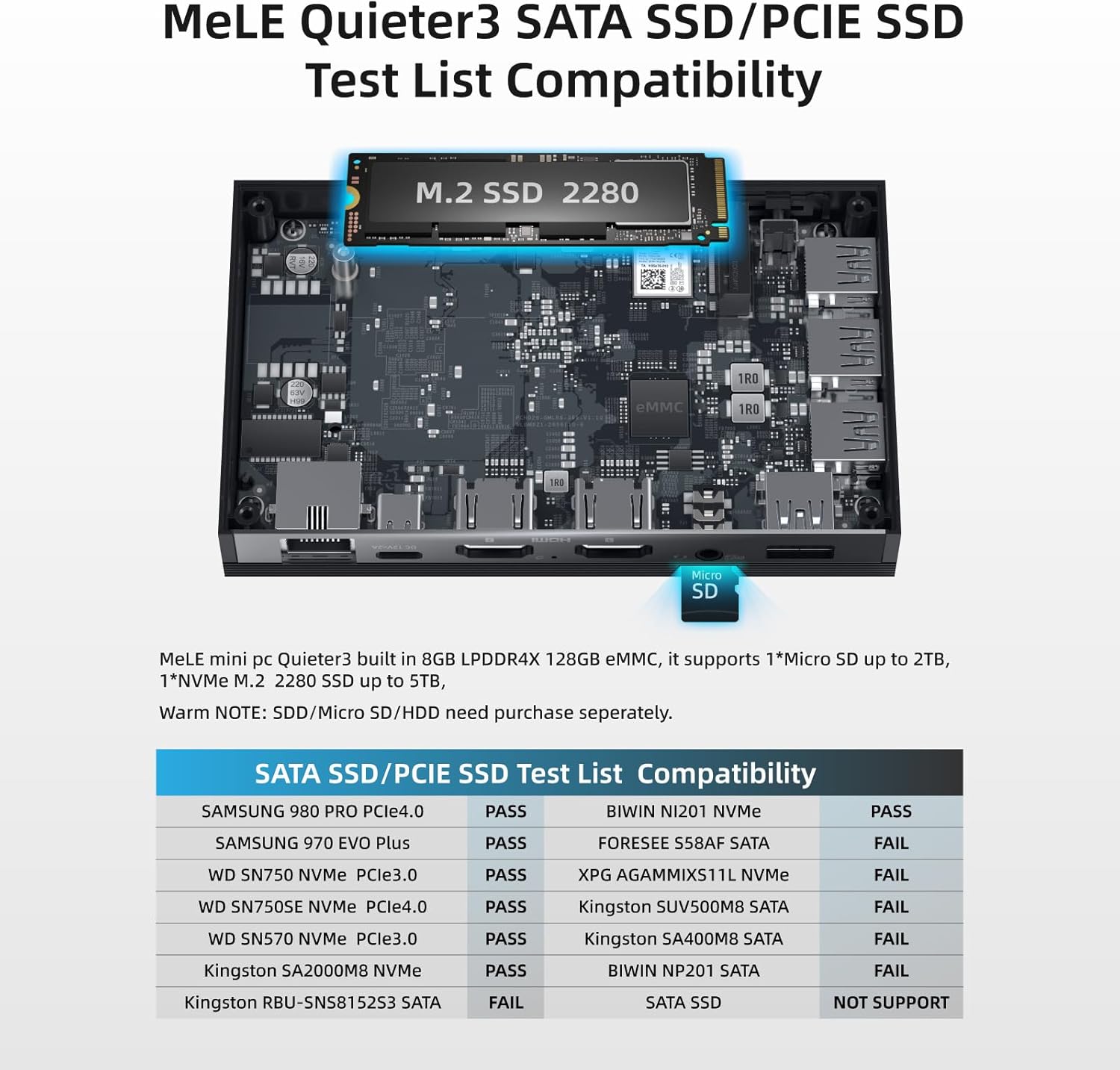 - Erweiterbarer Speicher & reichhaltige E/A-Anschlüsse - Eingebauter Ram 8GB, 256GB eMMC, es bietet auch grossen erweiterbaren Speicher für Mirco SD-Karte (bis zu 2 TB), M.2 NVMe x1 (bis zu 5TB), unterstützt externe SDD/Festplatte bis zu 4TB. Mit