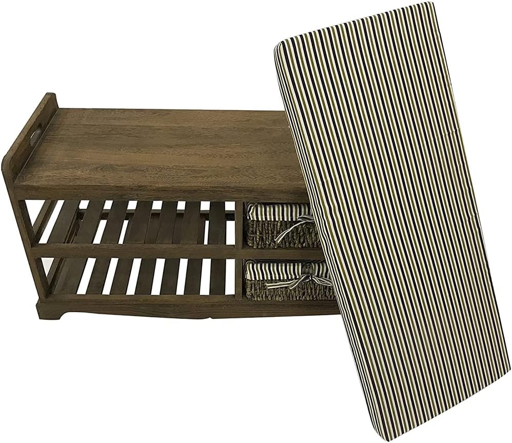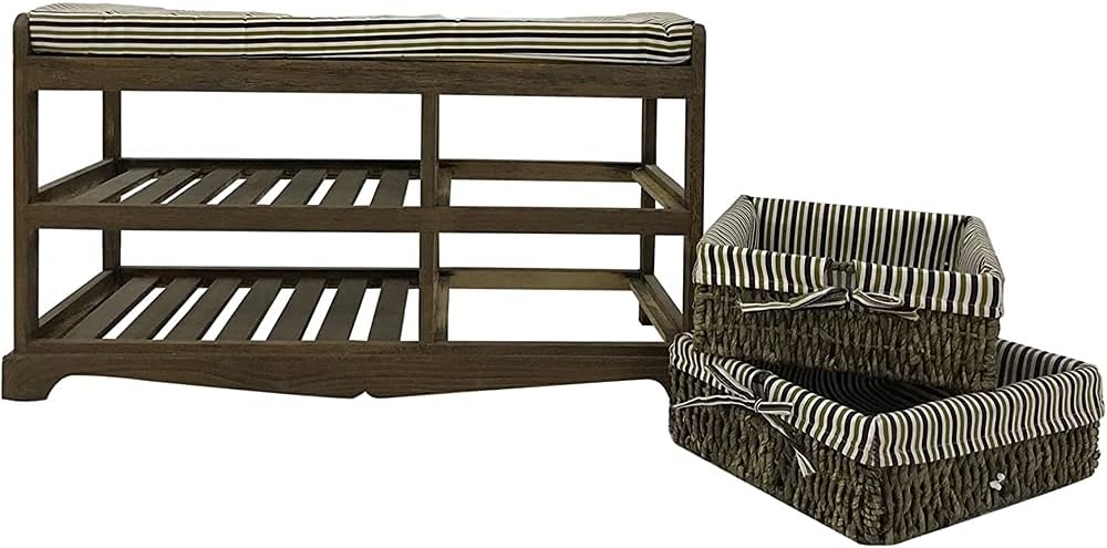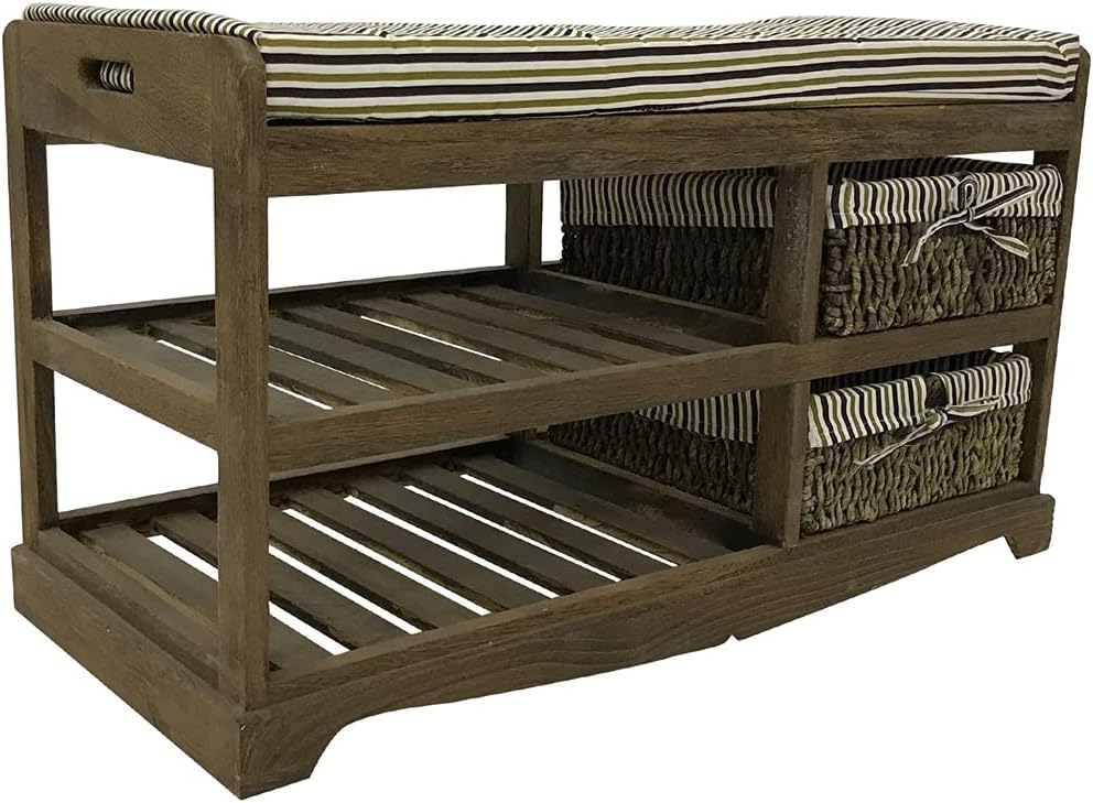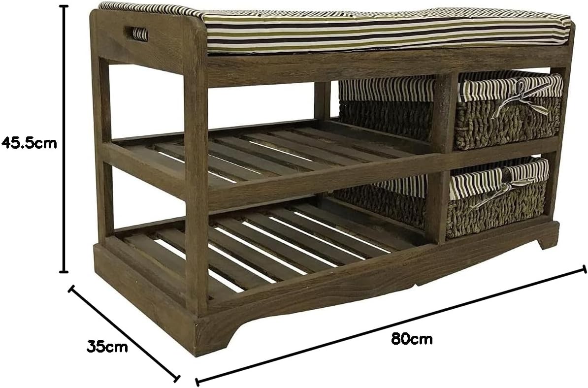 Melko Sitzbank inkl. Sitzkissen und 2 Rattankörbe Schuhbank Schuhregal Flurbank Schuschrank Polsterb