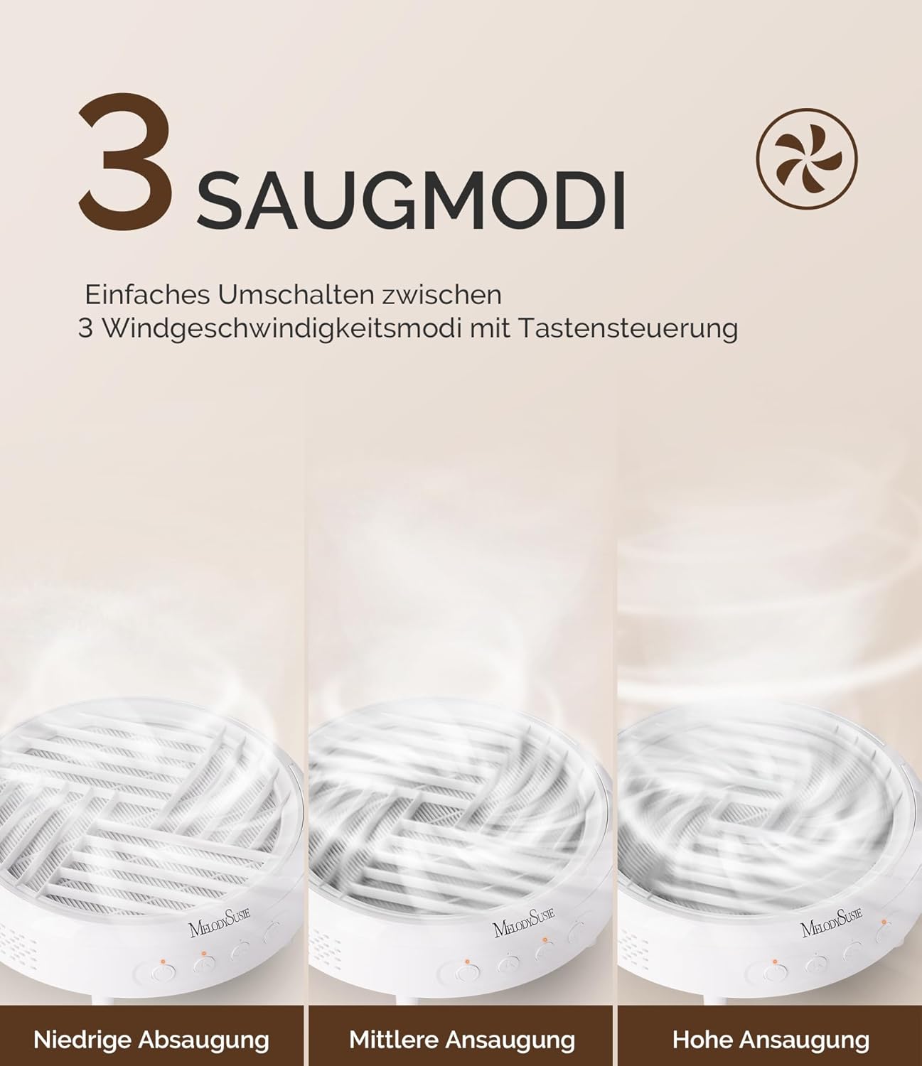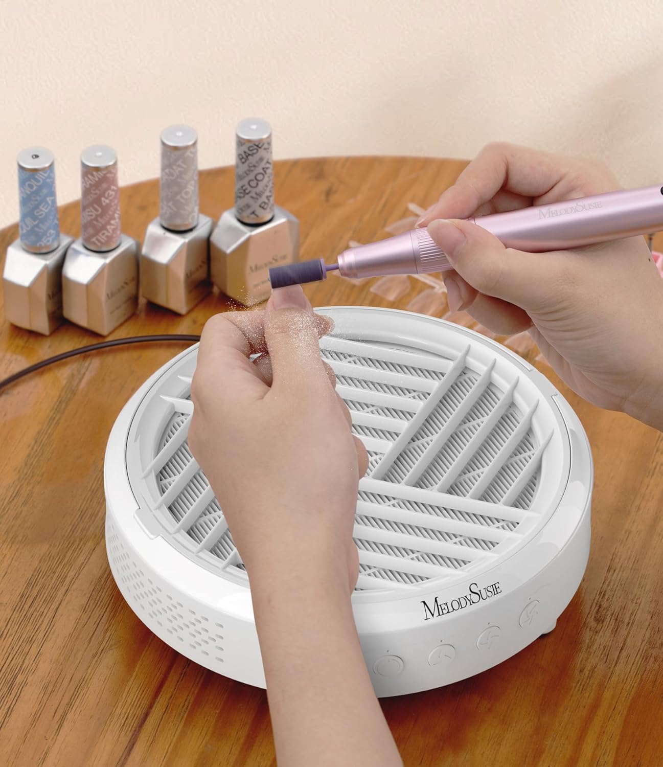 - 3 Absaugung wählen: Ausgestattet mit einem hochwertigen, leistungsstarken Motor arbeitet dieser Nagelstaubsauger geräuscharm und sorgt so für ein angenehmeres Erlebnis beim Feilen. Mit der praktischen Tastensteuerung können Sie die Saugleistung ganz
