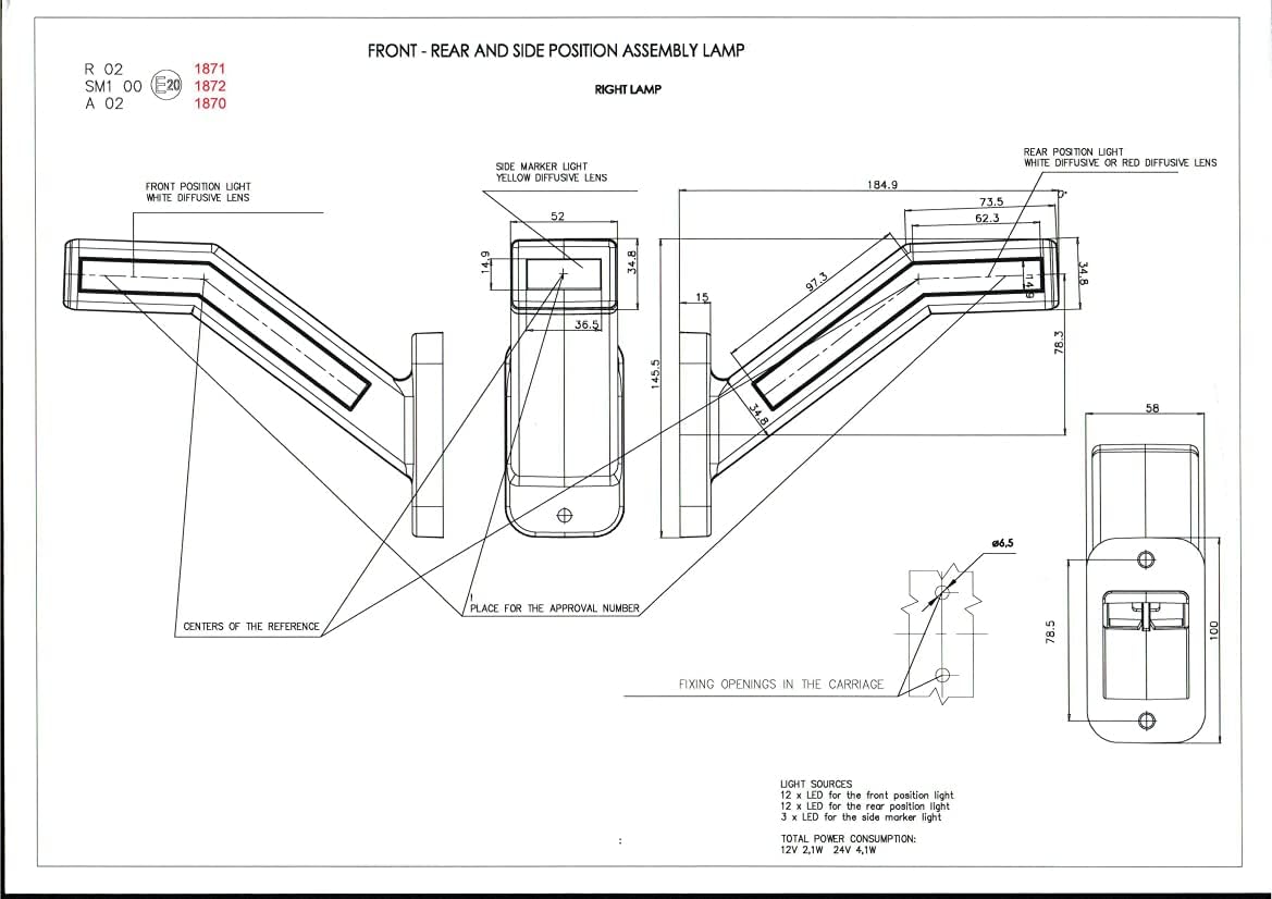 • Gesamtlange - 184,9 mm; Lichtlange - 159,6 mm; Höhe - 145,5 mm; Tiefe - 52 mm; Basisbreite - 58 mm; Basishöhe - 100 mm; Basistiefe - 15 mm;