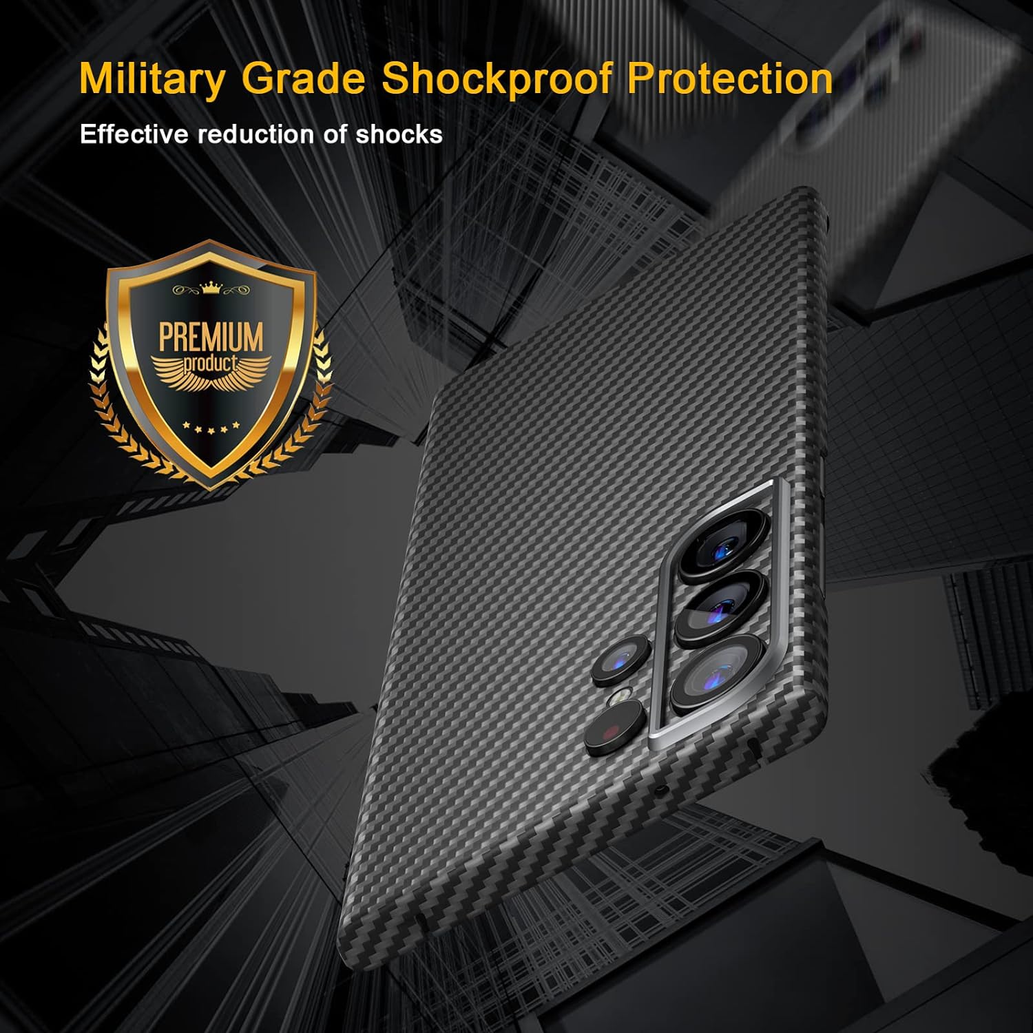 - [Echte Karbonfaser]: Die ultradünne MEMUMI Galaxy S23 Ultra Hülle besteht aus 100% Aramidfaser, die aufgrund ihrer Hitzebeständigkeit, Reibungsbeständigkeit und Korrosionsbeständigkeit im Allgemeinen in Flugzeugen und beim Militär verwendet wird.