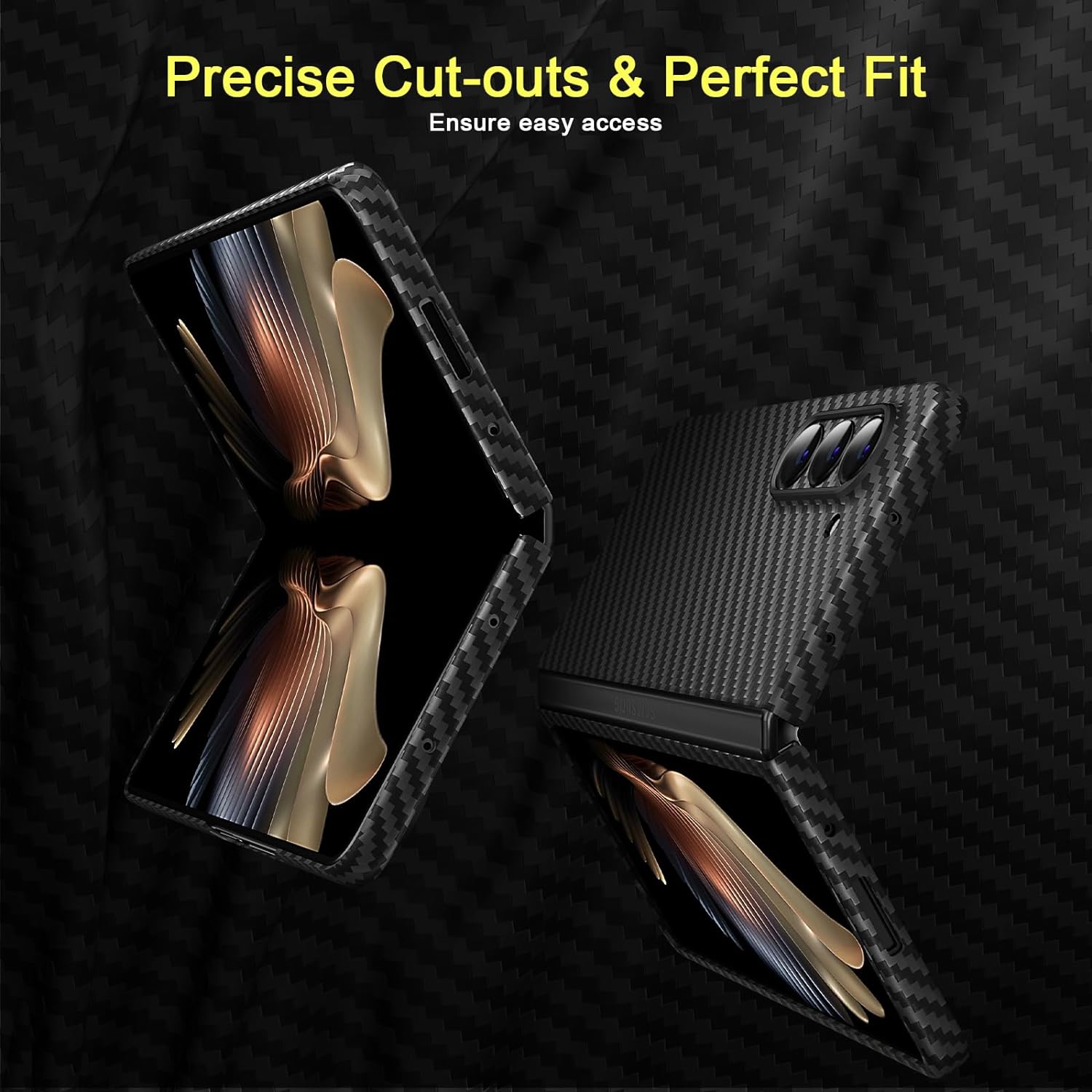 - [Echte Karbonfaser]: Die memumi ultra dünne Galaxy Z Fold5 5G (2023 version) Hülle besteht aus 100% Aramidfaser, die aufgrund ihrer Hitzebeständigkeit, Reibungsbeständigkeit und Korrosionsbeständigkeit im Allgemeinen in Flugzeugen und beim Militär
