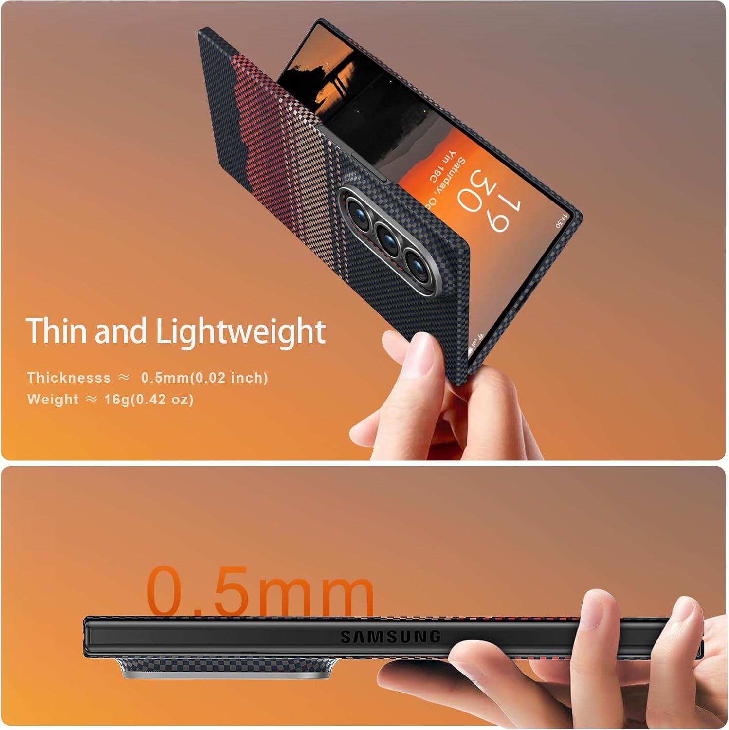 memumi Carbon Hülle für Galaxy Z Fold 7, mit Schutzfolie auf der Vorderseite, 0,5 mm Superdünne, Hül