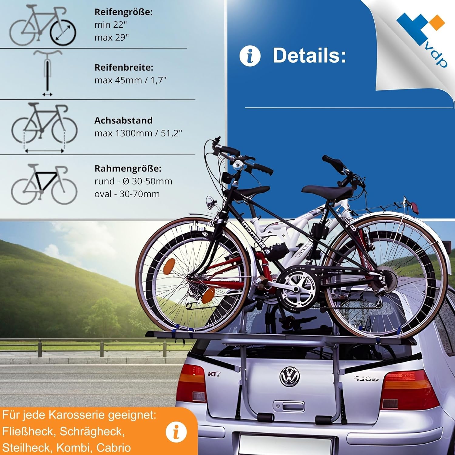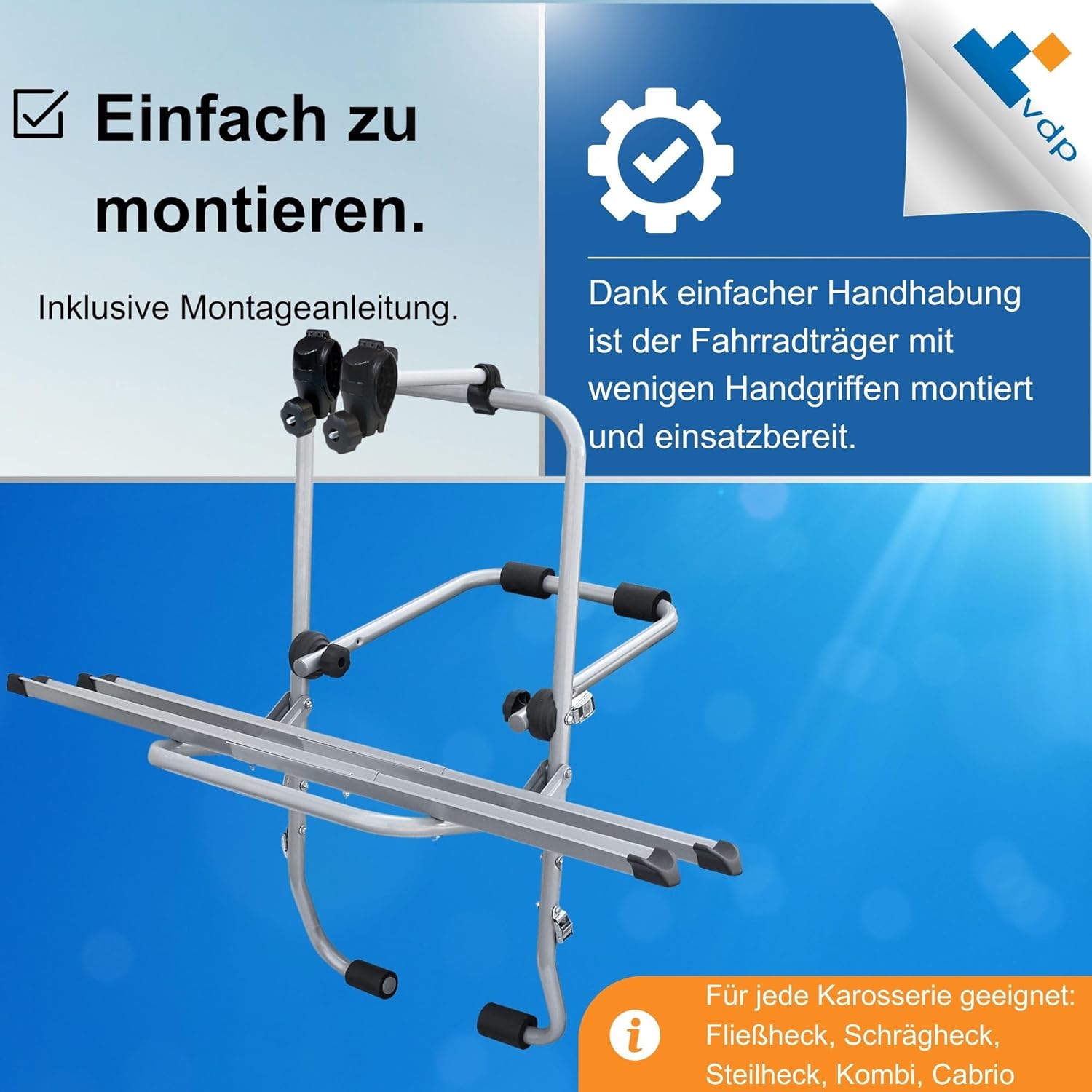 - Heckfahrradtraeger aus hochwertigem stabilem Stahlmit abklappbaren Schienen, leicht verstaubar