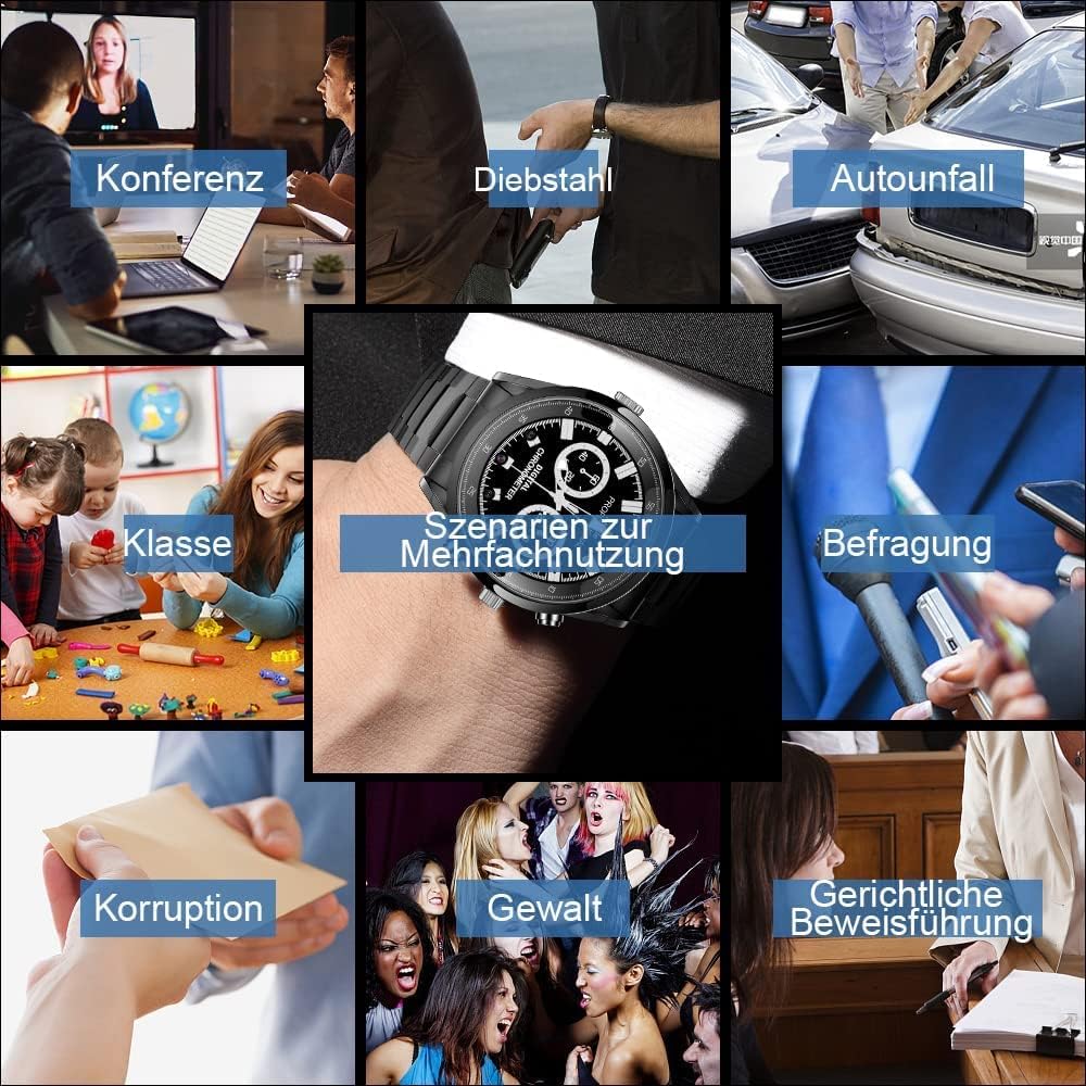 Menborn Kompaktkamera Spionagekamera Uhr Typ Infrarot Bewegungserkennung Kamera 32 GB Stahlarmband,