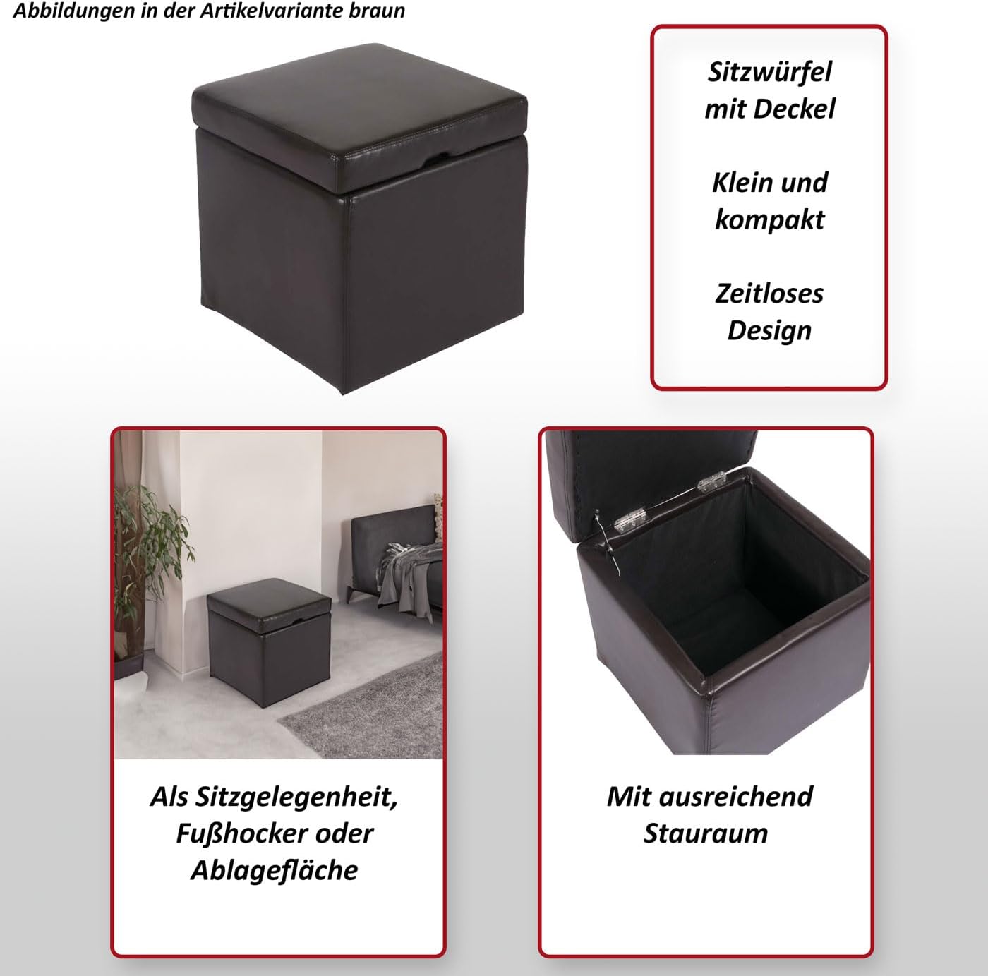 - Als Sitzhocker und Aufbewahrungsbox zugleich verwendbar!. Material: Sitzfläche aus beschichtetem Spaltleder (Enthält nichttextile Teile tierischen Ursprungs). Seitenteile aus Kunstleder (100% Polyurethan). in verschiedenen Varianten erhältlich....