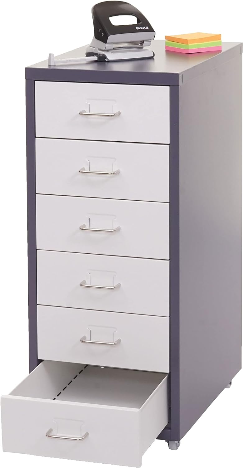 • Dieser schlichte Bürocontainer darf in Ihrem Arbeitszimmer nicht fehlen. Die sechs Schubladen aus Stahl bieten ausreichend Platz für beispielsweise Büroutensilien, Computerzubehör und Dokumente, die nichts auf Ihrem Schreibtisch zu suchen haben.