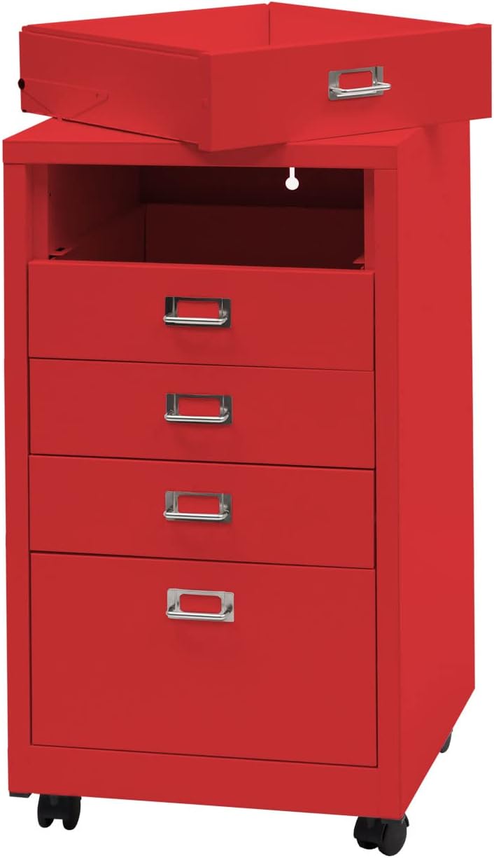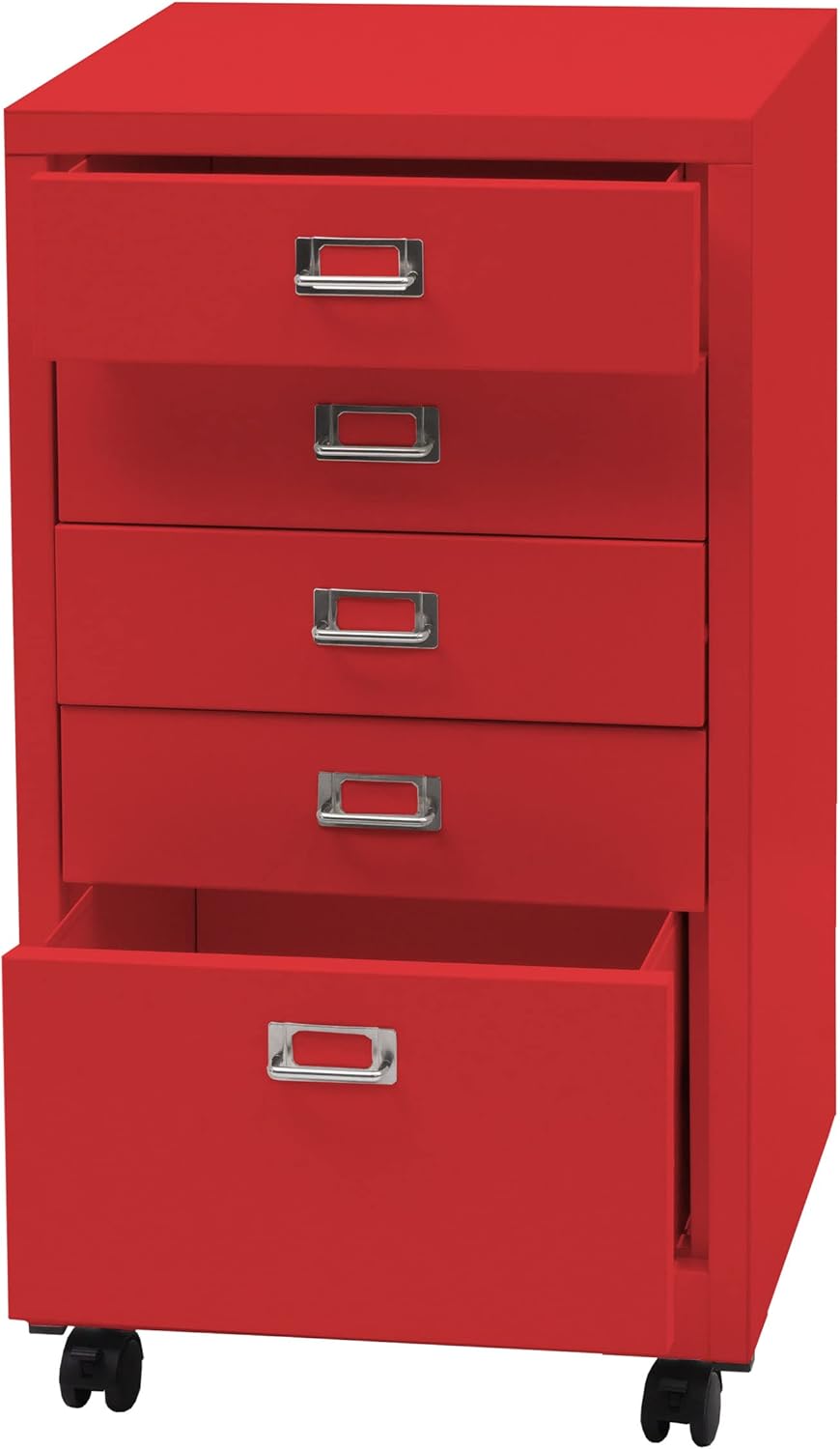 • 5 geräumige Schubladen mit Haltegriffen | Schubladen mit Vollauszug | Mit Etikettenhalter | Vier Laufrollen (zwei feststellbar) | Metallstärke: 0,6 mm