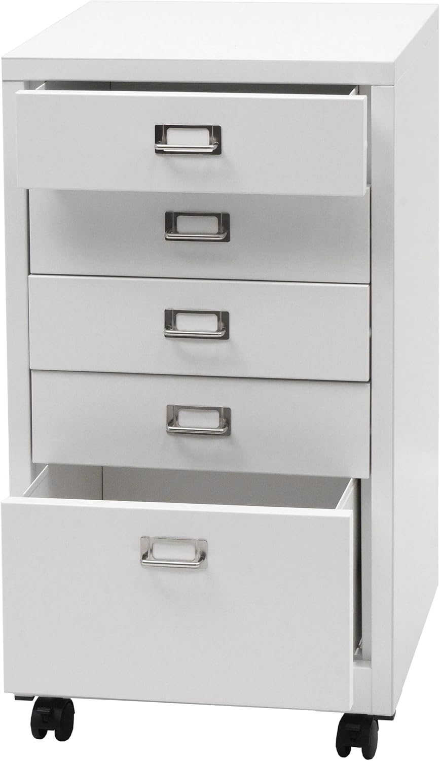 - Dieser schlichte Bürocontainer darf in Ihrem Arbeitszimmer nicht fehlen. Die fünf Schubladen aus Stahl bieten ausreichend Platz für beispielsweise Büroutensilien, Computerzubehör und Dokumente, die nichts auf Ihrem Schreibtisch zu suchen haben.
