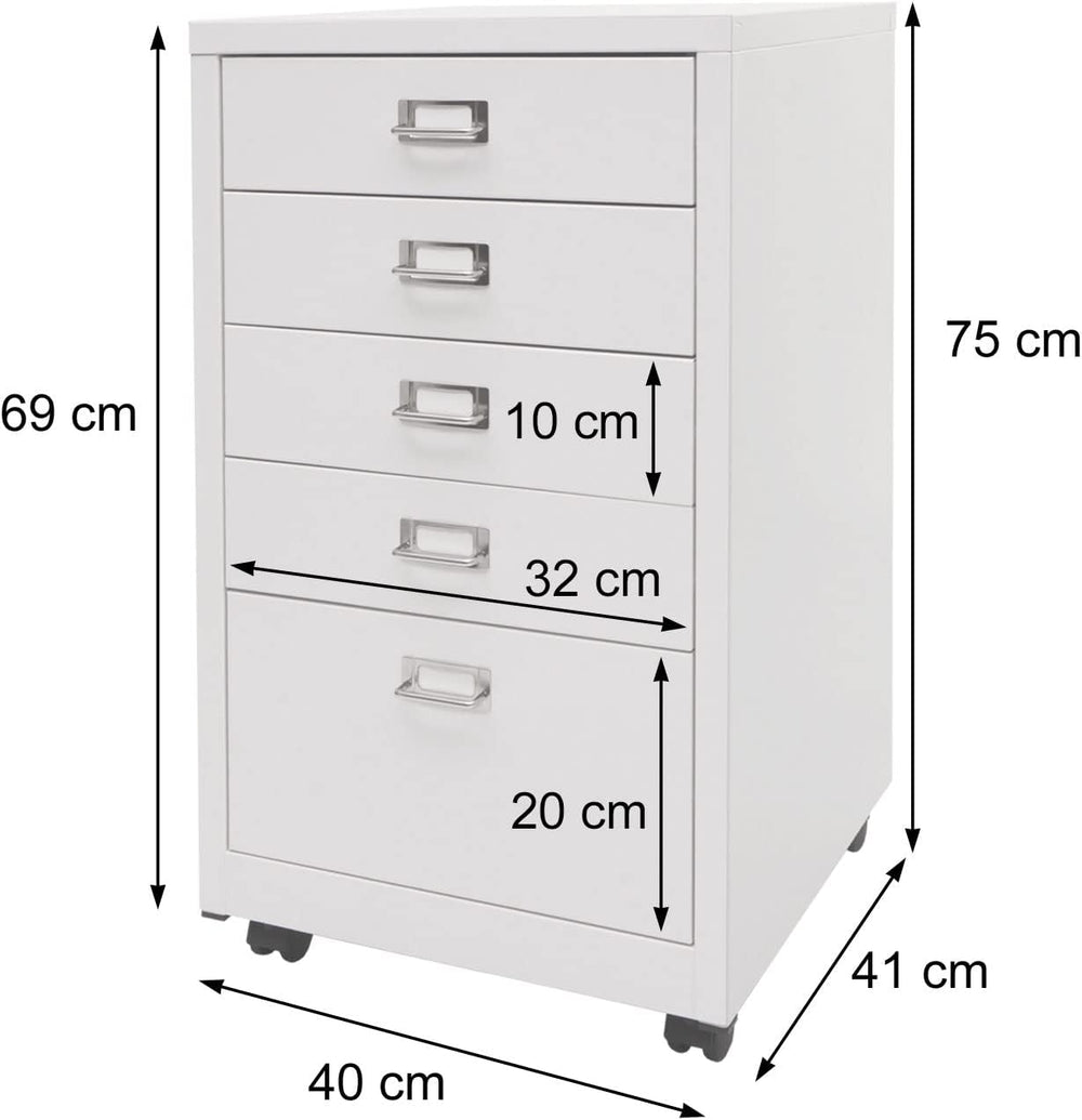 - 5 geräumige Schubladen mit Haltegriffen | Schubladen mit Vollauszug | Mit Etikettenhalter | Vier Laufrollen (zwei feststellbar) | Metallstärke: 0,6 mm