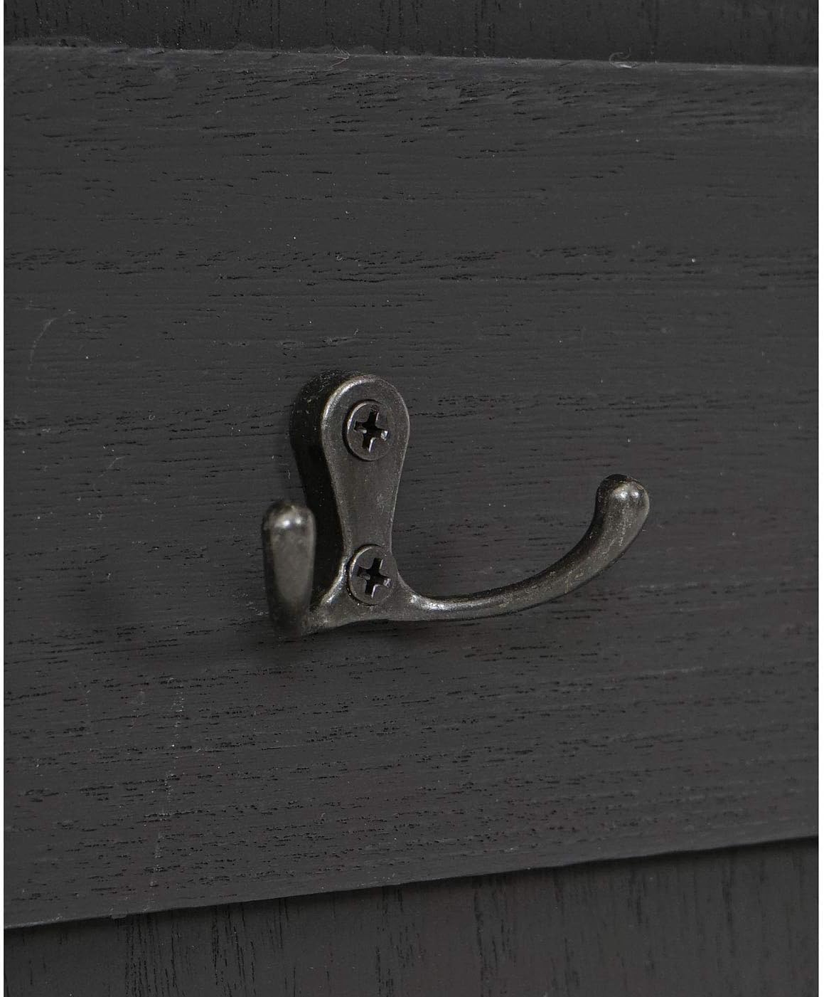 - Dimensionen (HxLxB): 91x10x60cm | Material: Massives Paulowniaholz, Kleiderhaken aus Metall in Messing-Optik | Farbe: Dunkelgrau