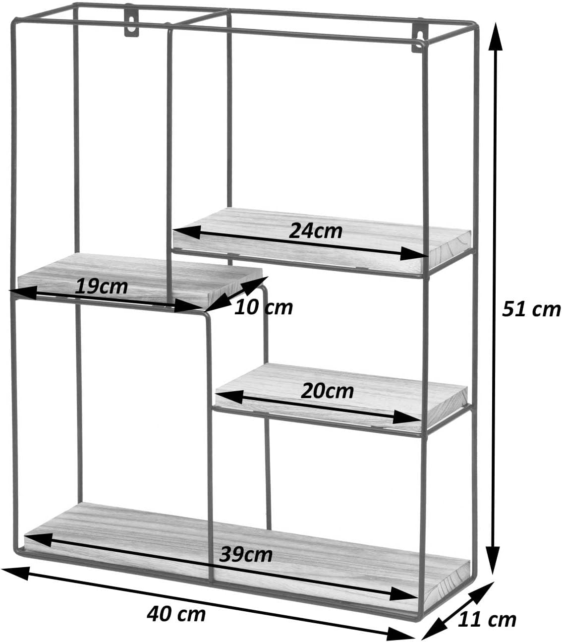 - Dieses dekorative Regal verfügt über vier Regalböden, die ausreichend Platz für Ihre persönlichen Gegenstände bieten. Mit diesem Wandregal können Sie nicht nur Ihren Raum organisieren, sondern auch einen modernen Akzent setzen.