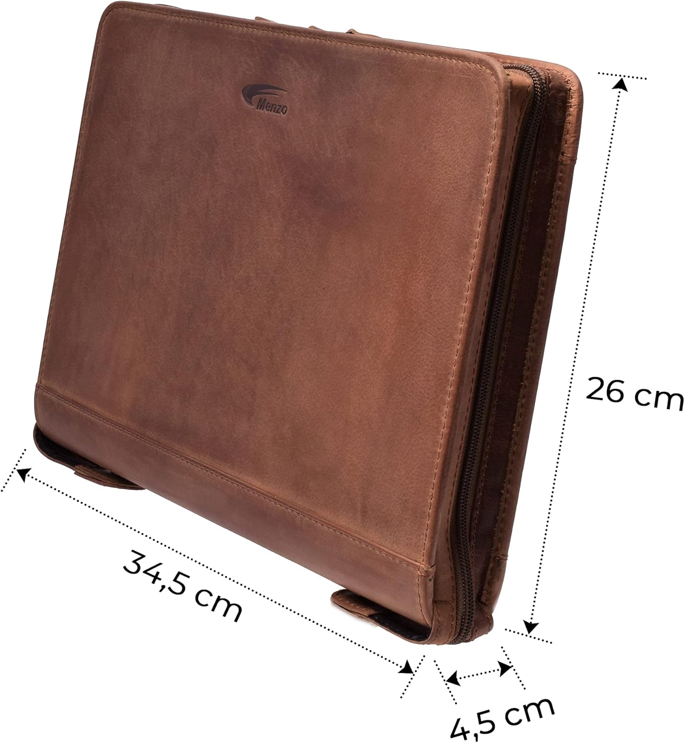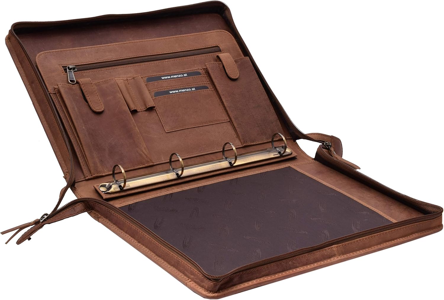 MENZO Lederschreibmappe, Dokumentenmappe, echtes Büffelleder Ledermappe, Schreibmappe, Businessmappe
